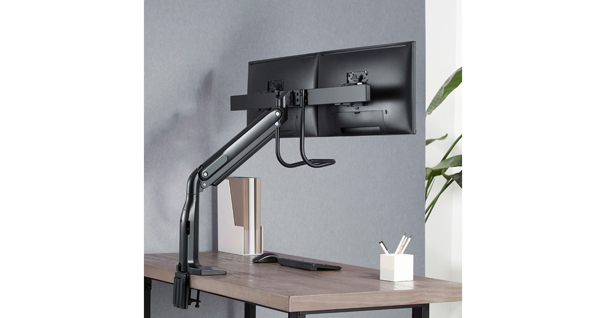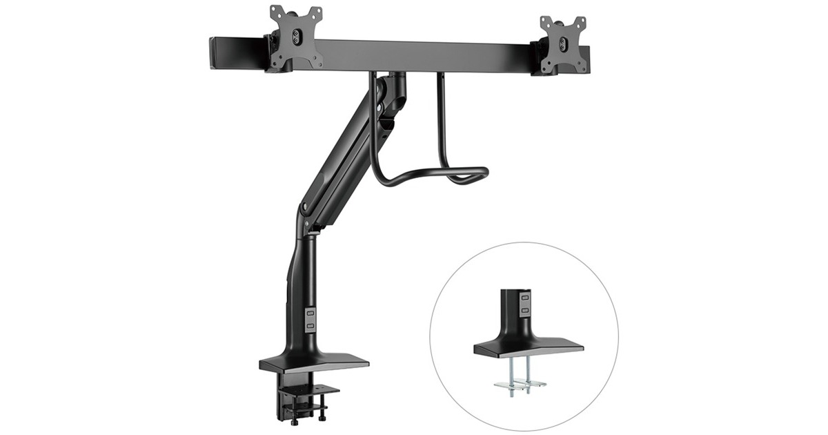 Der HA Gasliftarm Dual ist eine Tischhalterung für bis zu zwei Monitore von 17 - 32″ (43 – 81 cm). Die Konstruktion ist aus hochwertigem, langlebigem Aluminium gefertigt. Durch extrem leichtgängige und auf das Gerätegewicht einstellbare Gasfederungen zudem vollbeweglich. Die Monitore lassen sich dadurch mühelos, nahezu schwebend, in jede gewünschte Position bringen. Der Neigungswinkel ist mit -45°/+22° variabel einstellbar und die Einzelaufnahmen sind ±32° schwenkbar. Zusätzlich ist eine stufenloser Wechsel der Bildschirmausrichtung möglich. Die Doppel-Monitoraufnahme ist um ±90° schwenkbar. Die VESA-Universalaufnahmen können mit 75 x 75 und 100 x 100 mm bestückt werden. Der stabile Griff sorgt für komfortables Verstellen der Monitore und vermeidet Fingerabdrücke auf der Sichtfläche. Die Kabel der verbauten Komponenten können entlang der Schwenkarme verlegt und mit Clips sauber fixiert werden. Wahlweise ist eine Klemm- oder Schraubmontage durch die Tischplatte möglich. Die Oberfläche der Aluminium-Halterung ist durch eine schlag- und kratzfeste Pulverbeschichtung veredelt.Art.-Nr.: 100022472