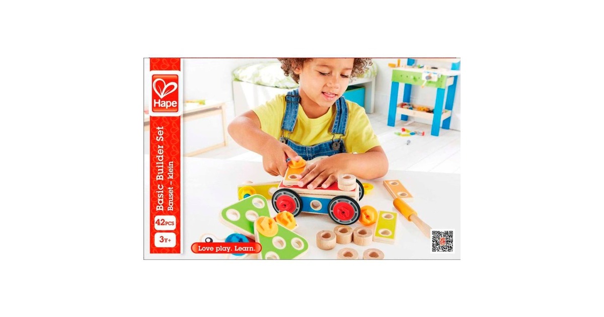 Dieses Bauset für Kinder ab 3 Jahren enthält vieles, was sich kleine Baumeister ab drei Jahren wünschen. Platten, Schrauben, Räder und dazugehöriges Werkzeug - alles aus Holz. Mit diesem Set kann frei gebaut werden, in der Anleitung sind außerdem Anregungen für spannende Bauprojekte enthalten. Art.-Nr.: 1905899