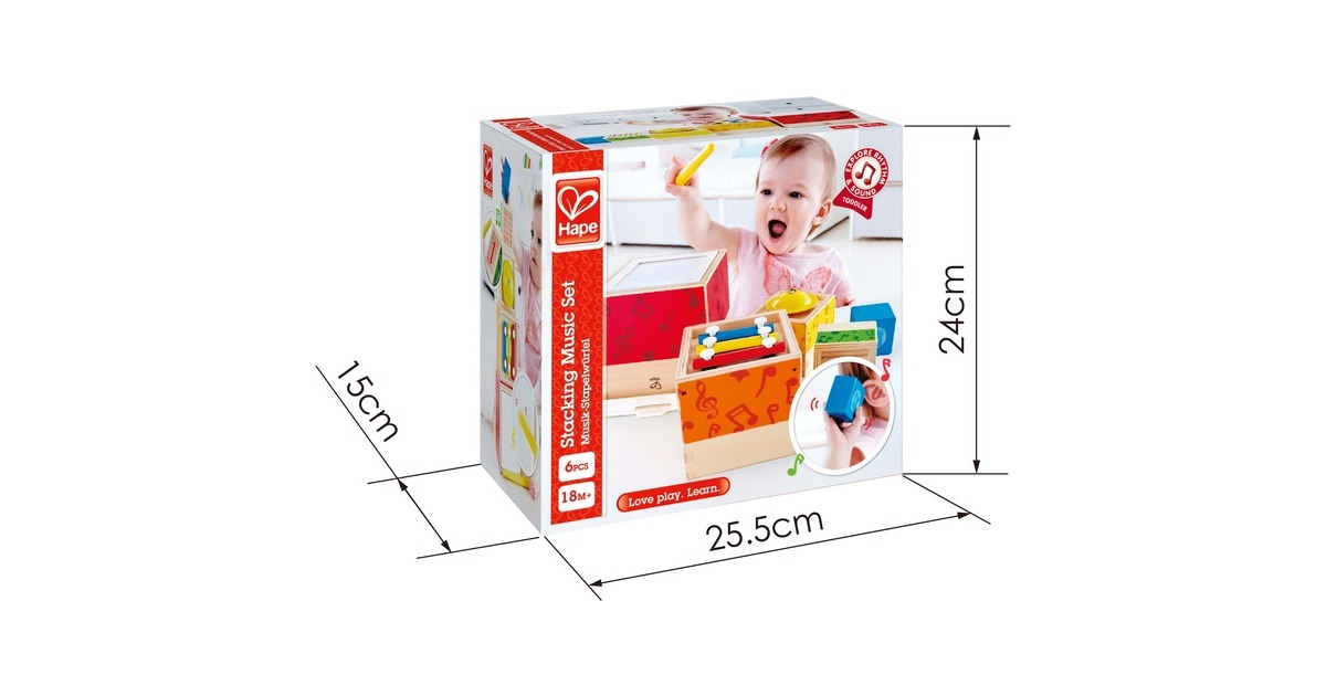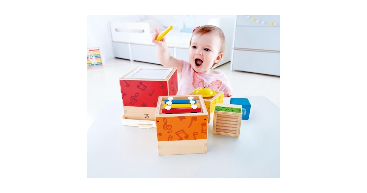 Mit diesem Set können Kinder ab 18 Monaten Musik und Rhythmus selbstständig erkunden. Die Würfel können beliebig aufeinandergestapelt und jeweils als Musikinstrument genutzt werden. Durch immer neue Kombinationen ergeben sich auch immer wieder neue akustische Abläufe. Die Würfel können zum Transport ineinander gestapelt werden - durch den praktischen Tragegriff ist das Set sehr handlich und kann überhall hin mitgenommen werden.