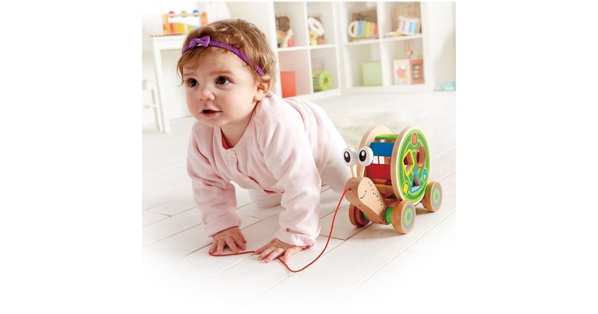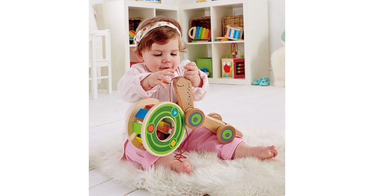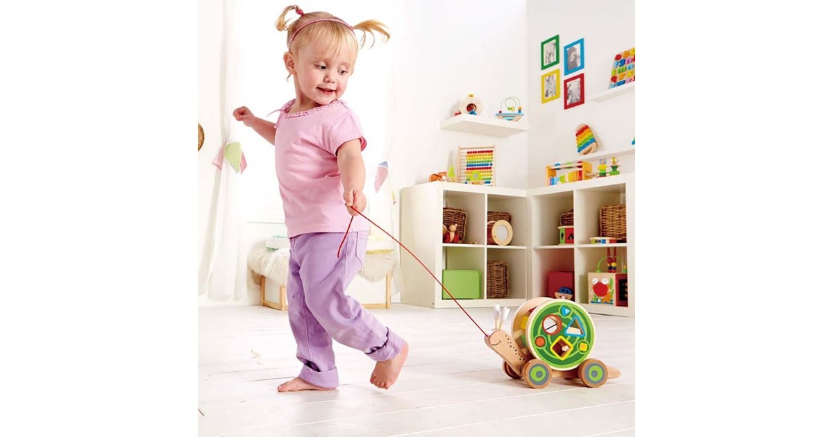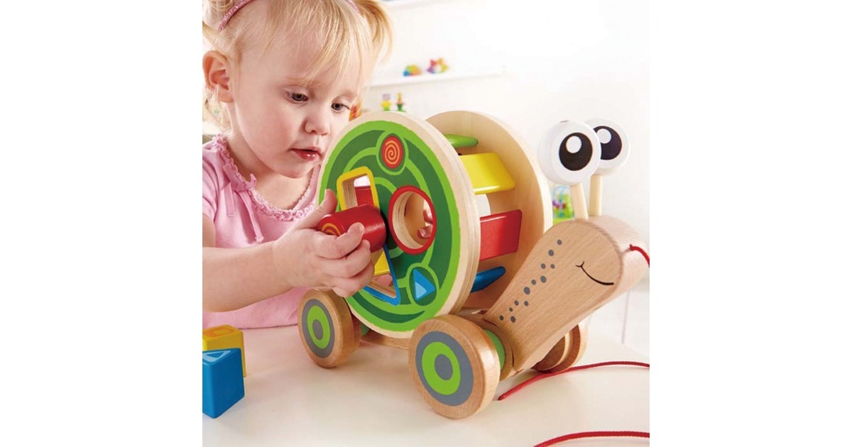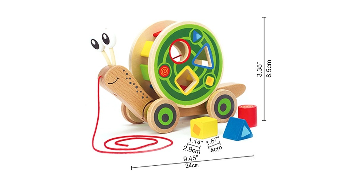 Diese Schnecke ist ein wahrer Alleskönner! Sie transportiert ein Schneckenhaus voller Holzklötzchen, während sie gezogen wird. Der bunte Formensortierer kann auch abgenommen werden. Dann rollt die Schnecke von ganz allein. Benennen Sie alle Farben von Schnecke und Schneckenhaus. Sortieren Sie die bunten Formen zu den passenden Streifen am Schneckenhaus. Mit Hilfe der Klötzchen können Sie auch einen "Irrgarten" bauen und die Schnecke durch diesen ziehen. Benutzen Sie dabei Begriffe wie „schieben“ und „ziehen“, um die Aktivitäten Ihres Kindes zu beschreiben.Art.-Nr.: 1471429