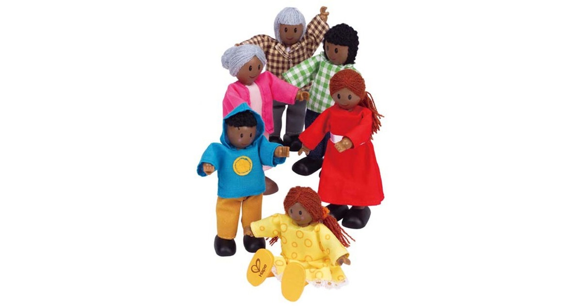 Diese Puppenfamilie besteht aus Opa, Oma, Vater, Mutter, Sohn und Tochter. Das Spiel mit diesen Figuren fördert Vorstellungskraft und Kreativität. Sie regen zum Nachahmungs- und Fantasiespiel an, fördern das Geschichtenausdenken, das Rollenspiel und die Kreativität. Dadurch werden Grundlagen für Kommunikationsfähigkeit, Kooperation, Zusammenarbeit und Sprachentwicklung gelegt.Art.-Nr.: 1496103