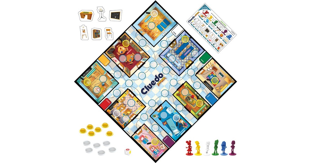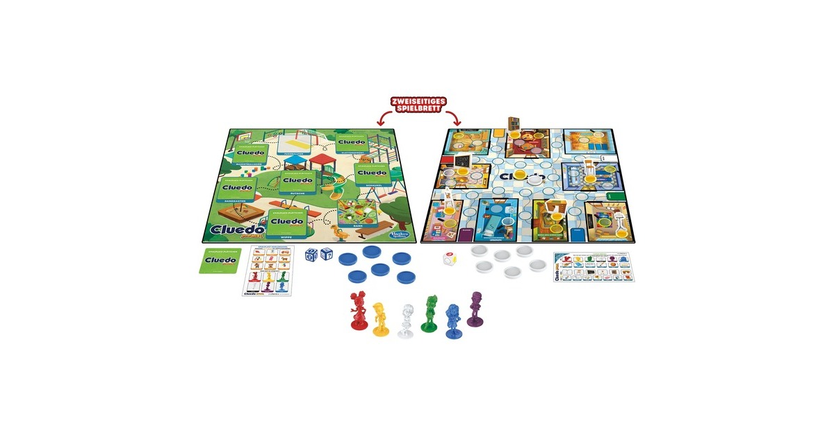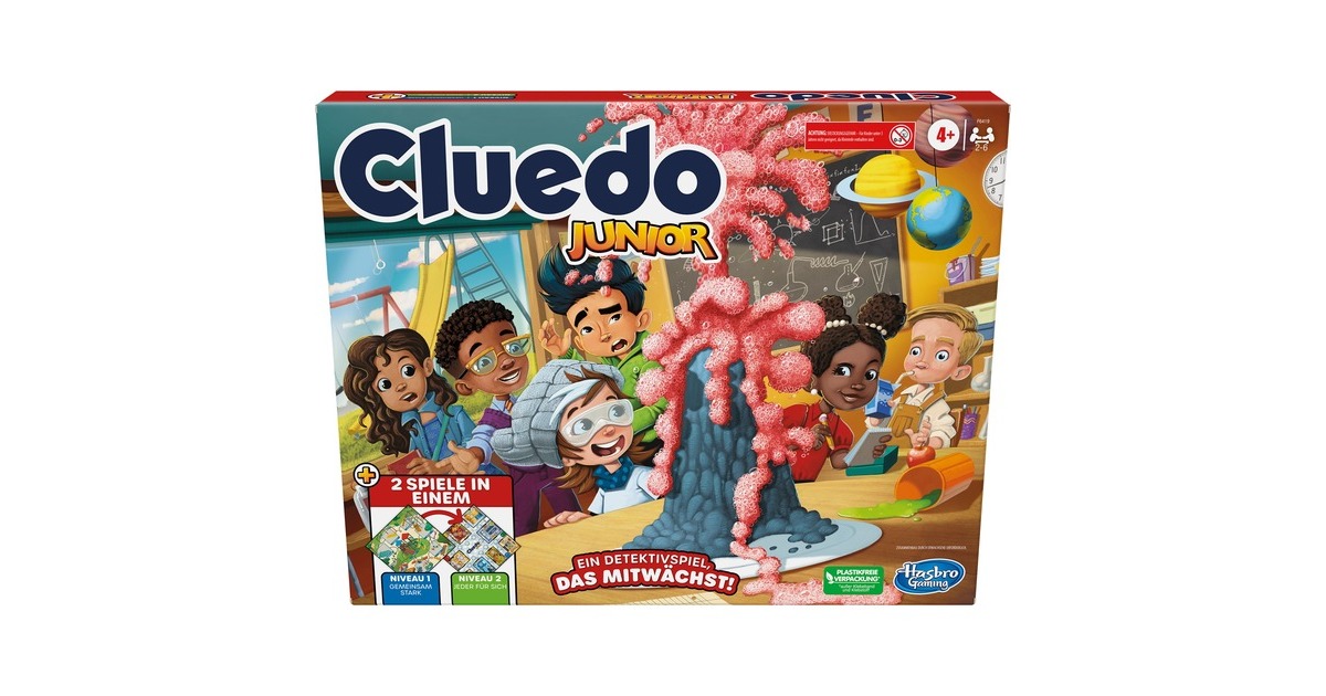 Bei Cluedo Junior können schon Vorschüler zeigen, ob sie gute Detektive sind. Dieses Spiel auf Basis des bekannten Cluedo-Spiels bietet zwei Spielniveaus und wächst mit den Kindern mit. Es eignet sich für Spürnasen ab 4 Jahren und enthält ein doppelseitiges Spielbrett. In Niveau 1 ziehen die Spieler an einem Strang, um das Rätsel auf dem Spielplatz zu lösen. Hier hat jemand versehentlich einen Gegenstand in seinen Rucksack gepackt. Nun liegt es an den Kindern, den Spielplatz zu erkunden und nach Hinweisen zu suchen. Nur gemeinsam können sie herausfinden, welcher Gegenstand verschwunden ist und wer ihn stibitzt hat. Sind die Junior-Detektive dann bereit für eine größere Aufgabe, wird das Spielbrett umgedreht und es erscheint das Labor-Rätsel. Hier geht es darum aufzuklären, wer den Vulkan ausbrechen ließ, womit dies geschah und wo der Täter hätte sein sollen.Art.-Nr.: 1871525