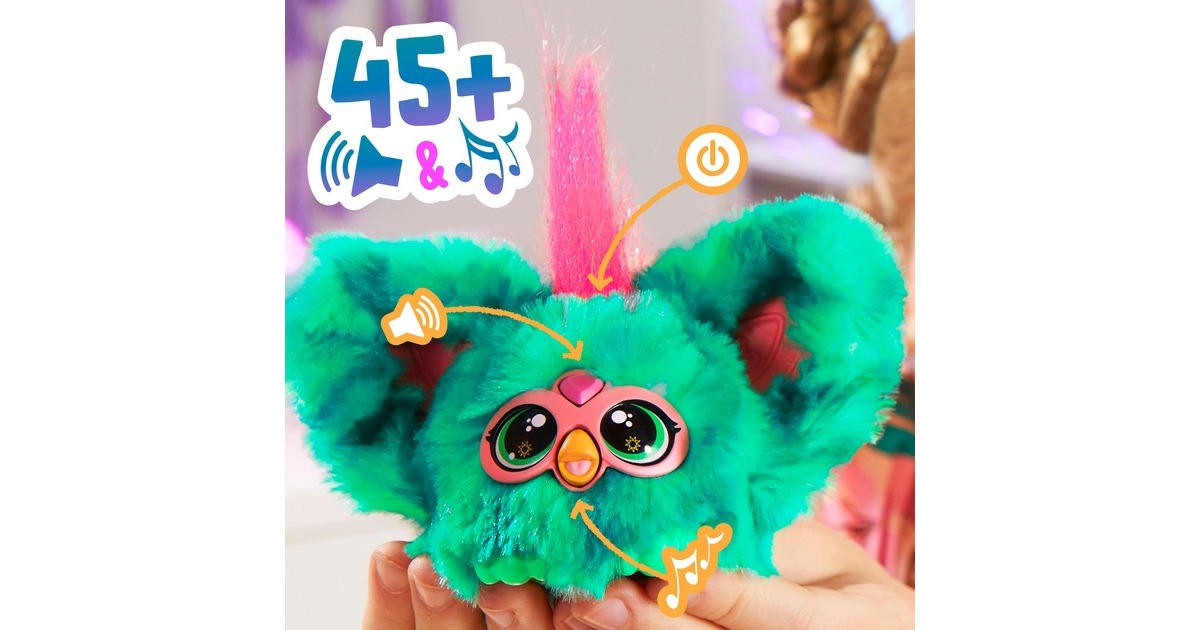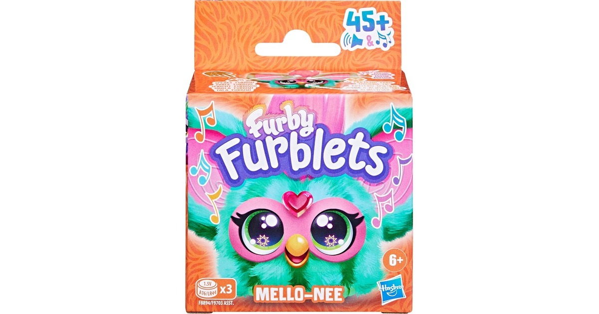 Furblets sind 5 cm kleine elektronische Furby-Spielzeuge, die Kindern ab 6 Jahren ein Lächeln ins Gesicht zaubern und gemeinsam Stimmung machen. Mit mehr als 45 lustigen Melodien, Geräuschen und Sätzen in Furbisch, die es zu entdecken gilt, haben diese kleinen Freunde eine große Persönlichkeit. Mello-Nee hat ein rot-grünes Fell in den Farben einer Wassermelone und spielt sommerliche Chill-Songs für eine entspannte Atmosphäre. Mit dem Schlüsselanhänger kann der liebenswerte kleine Kerl ganz einfach an einem Rucksack oder einer Reisetasche befestigt werden, um überall für eine stimmungsvolle Furblets Party zu sorgen.Art.-Nr.: 100036921
