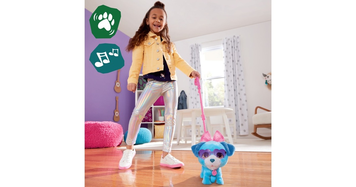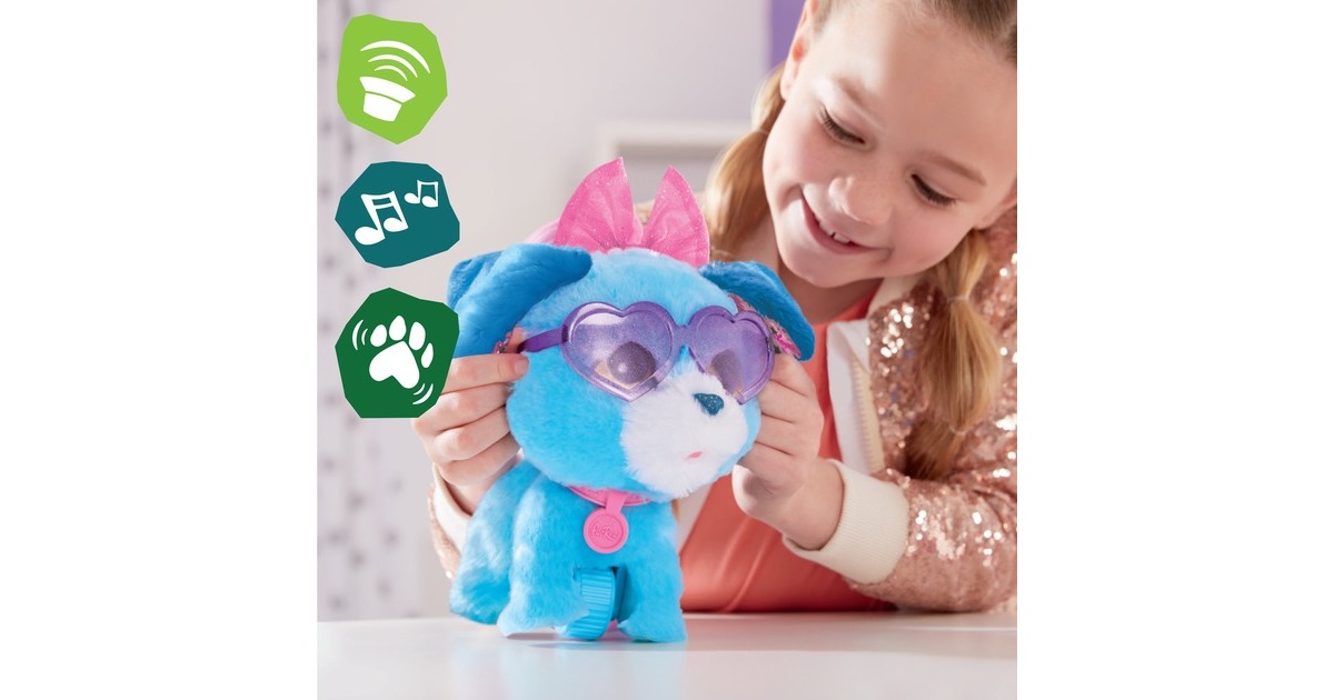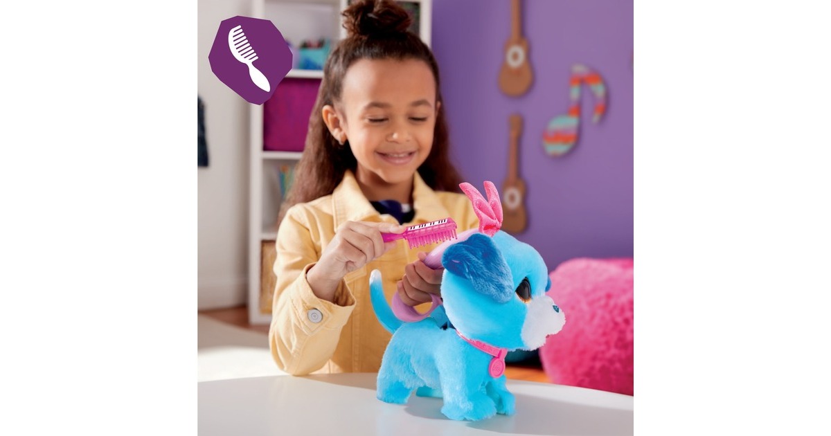 Das interaktive furReal Rockalots Hündchen mit Musik ist ein unwiderstehlich niedliches und absolut cooles Tierchen, das so schnell „rockt“, wie seine kleinen Besitzer! Wird es für einen Spaziergang angeschoben, spielt es 3 tolle Lieder ab, die immer schneller oder langsamer werden, je nachdem, in welchem Tempo das Hündchen geschoben wird. Das rockige Hündchen kommt mit einer gitarrenförmigen Bürste, um das weiche Fell zu kämmen, sowie einer Sonnenbrille in Herzform und einem regenbogenfarbigen Röckchen, das auch als Haargummi verwendet werden kann! Das interaktive Tierchen bringt eine 2-teilige abnehmbare Leine mit, mit der es auf dem Boden Gassi geführt werden kann. Wenn es vorwärts geschoben wird, wackelt der Kopf, es macht glückliche Welpengeräusche und spielt rockige Songs ab. Wer kommt mit auf einen Spaziergang im Haus und tut so, als wäre es eine Bühne?Art.-Nr.: 1824961