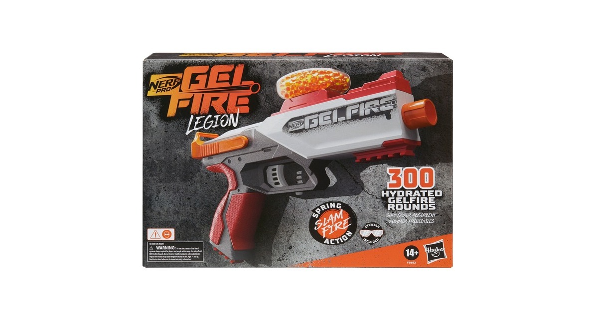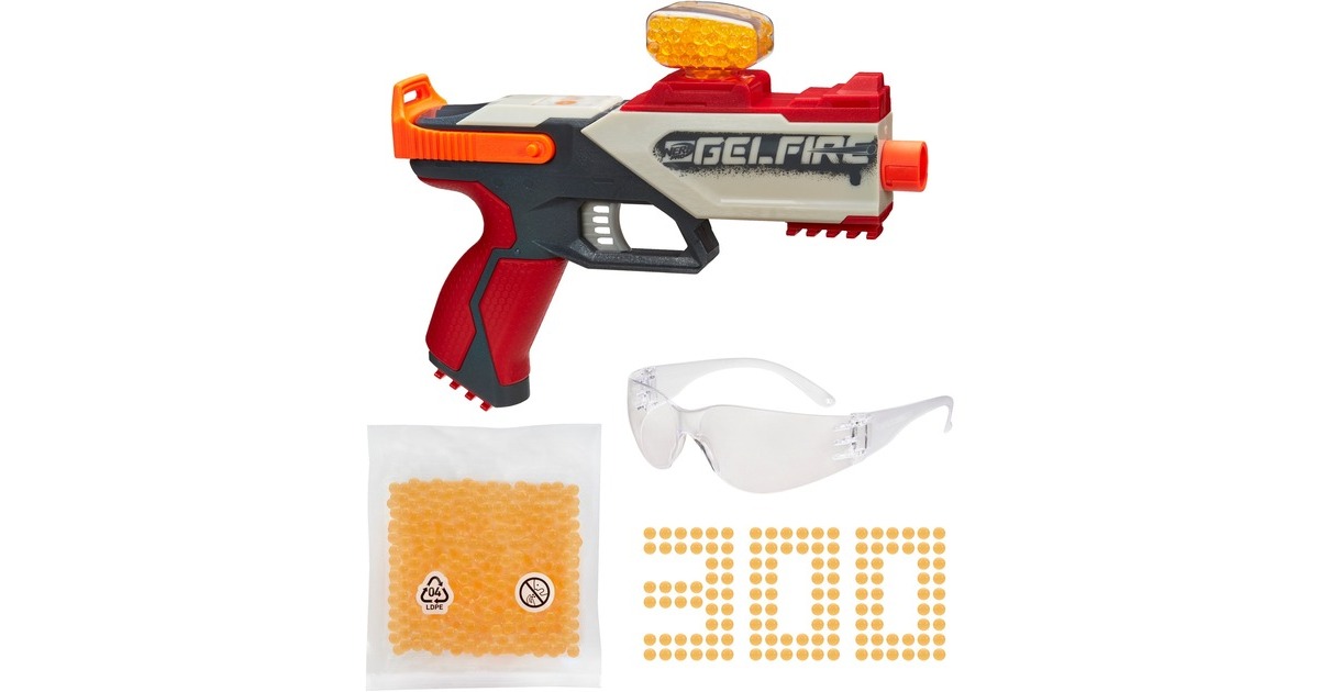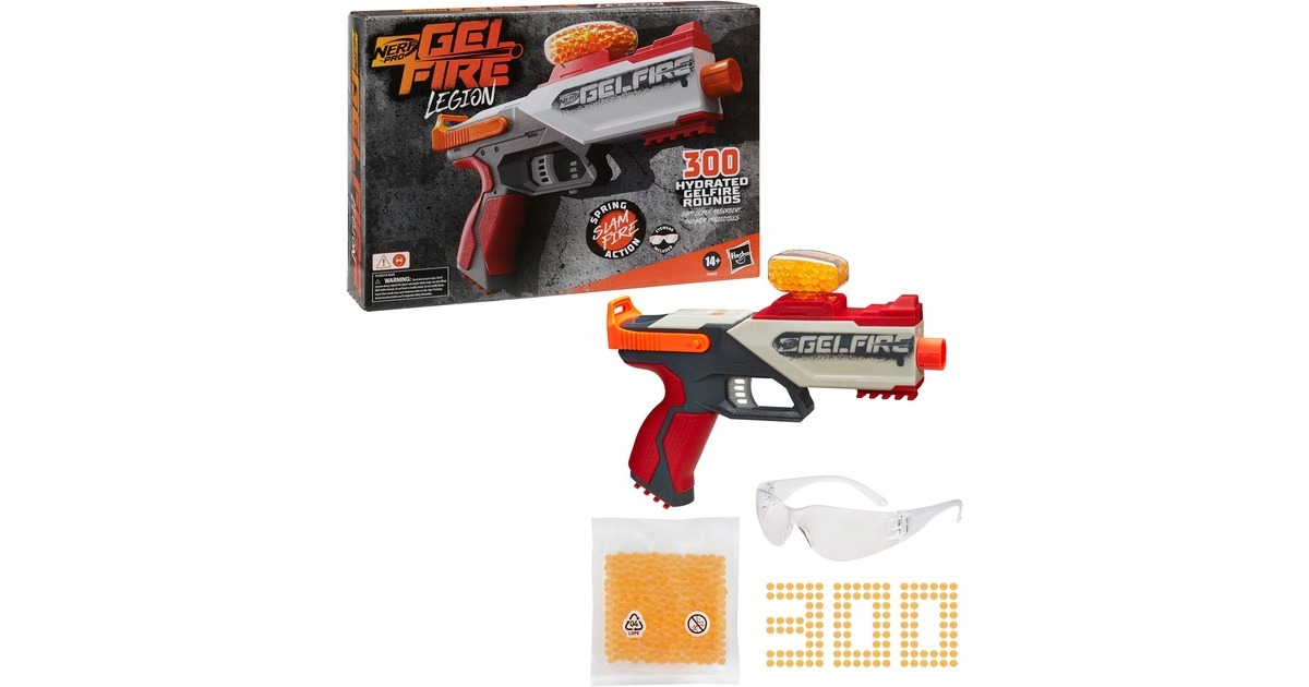 Stürze dich in die Schlacht mit den Nerf Pro Gelfire Blastern, deren hydrierte Kugeln beim Aufprall explodieren! Die Nerf Pro Gelfire Kugeln sind in der Packung noch dehydriert, so dass eine große Menge an Kugeln auf kleinem Raum untergebracht werden kann. Wird Wasser hinzugefügt, um die Patronen zu hydratisieren, so sind sie zum Gebrauch bereit. Die hydrierten Kugeln feuern mit hoher Geschwindigkeit aus dem Blaster und explodieren, wenn sie ein Ziel treffen. Damit ist kein Aufheben der Patronen mehr nötig. Der Nerf Pro Gelfire Legion Blaster verfügt über eine Federzündung, für die keine Batterien benötigt werden. Mit der Slam-Fire-Funktion kann er einen anhaltenden Strom von Kugeln abfeuern. Er enthält einen Trichter mit 130 Schuss Kapazität und eine Abzugssperre gegen versehentliches Abfeuern. Er wird mit einem Beutel mit 5000 Kugeln ausgeliefert. Art.-Nr.: 100010286