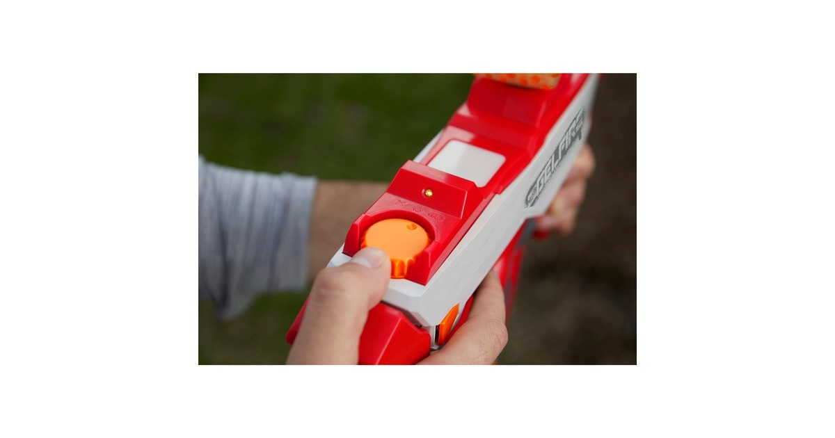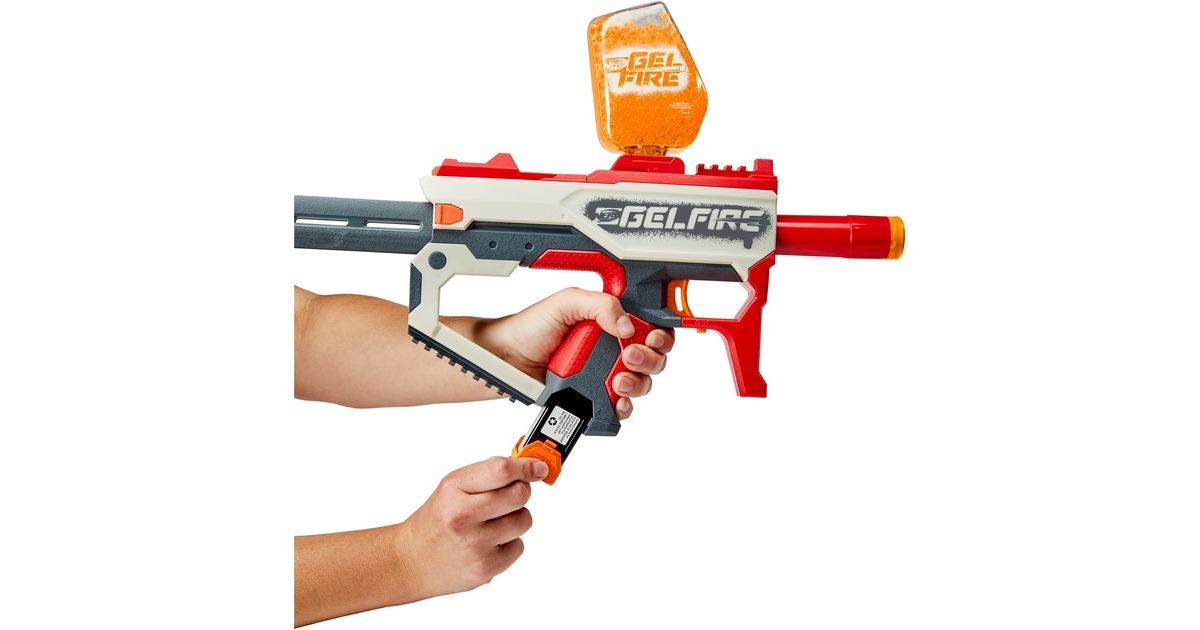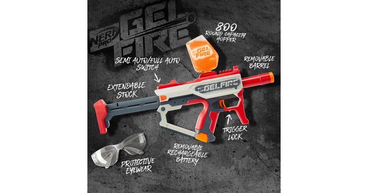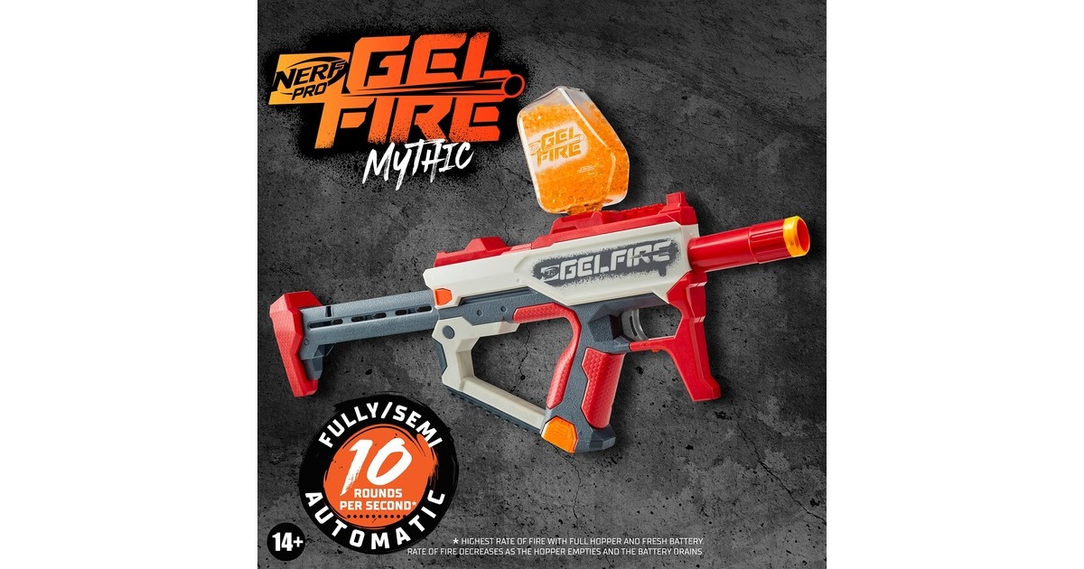 Stürze dich in die Schlacht mit den Nerf Pro Gelfire Blastern, deren hydrierte Kugeln beim Aufprall explodieren! Die Nerf Pro Gelfire Kugeln sind in der Packung noch dehydriert, so dass eine große Menge an Kugeln auf kleinem Raum untergebracht werden kann. Wird Wasser hinzugefügt, um die Patronen zu hydratisieren, so sind sie zum Gebrauch bereit. Die hydrierten Kugeln feuern mit hoher Geschwindigkeit aus dem Blaster und explodieren, wenn sie ein Ziel treffen. Damit ist kein Aufheben der Patronen mehr nötig. Der vollautomatische Nerf Pro Gelfire Mythic Blaster verfügt über einen Trichter mit einer hohen Kapazität von 800 Schuss. Der Blaster verfügt über einen Vollautomatik- und Halbautomatik-Modus, einen abnehmbaren Lauf und einen ausziehbaren Schaft. Mit dabei sind außerdem ein einfach einschiebbarer Akku, ein Ladekabel sowie zwei Beutel mit jeweils 5000 Kugeln.Art.-Nr.: 100010277