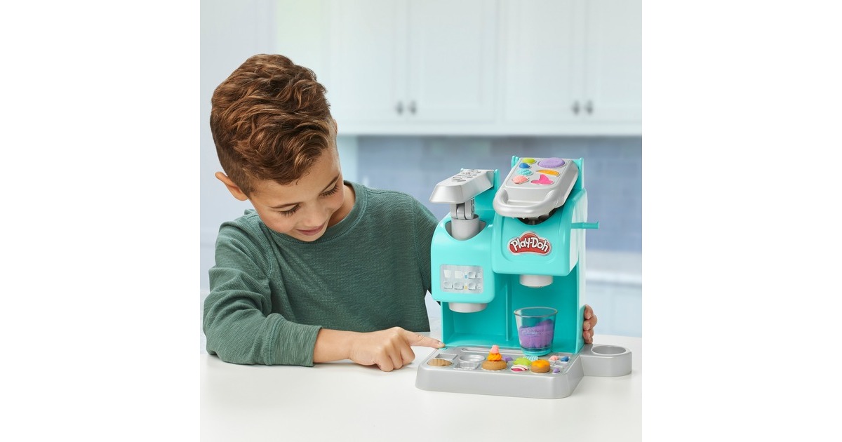 Das Knetspaß Café ermöglicht kleinen Knet-Baristas, in ihrem eigenen Café fantasievolle Play-Doh-Getränke zu servieren. Mit dem Spielzeug-Kaffeeautomaten lassen sich Becher mit bunter Spielknete füllen, drehen, zur Topping-Station verschieben und mit Play-Doh-Knete im Look von Sahne frisch und fröhlich dekorieren. Mit weiteren Formen entstehen Cookies, Cupcakes und Donuts und können auf dem durchsichtigen Törtchenständer stolz präsentiert werden. Egal ob Play-Doh-Kaffee, Tee, Eiskaffee, Frappés oder Smoothies hergestellt werden - der Spaß am Barista spielen ist immer wieder neu und vielfältig.Art.-Nr.: 1858562