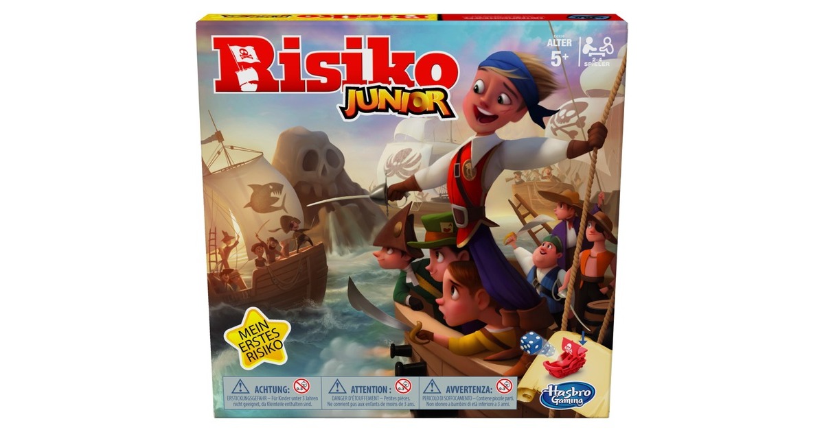 Wer besegelt die Weltmeere und erobert die meisten Inseln und Schätze? Risiko Junior ist schnell erlernt und mit coolem Piratenmotiv farbenfroh gestaltet. Kinder ab 5 Jahren ziehen mit ihren Piratenschiffen als Spielfiguren, aus denen sie auch ihre Würfel herauskatapultieren können, über den Spielplan und erobern Inseln und Schätze. Wer am Ende die meiste Beute gemacht hat, gewinnt. Das Spiel erfordert kein Einlesen, ist schnell eingerichtet und kann in weniger als 30 Minuten gespielt werden. Eine großartige Möglichkeit, Kindern die beliebte Marke Risiko näher zu bringen.Art.-Nr.: 1563165