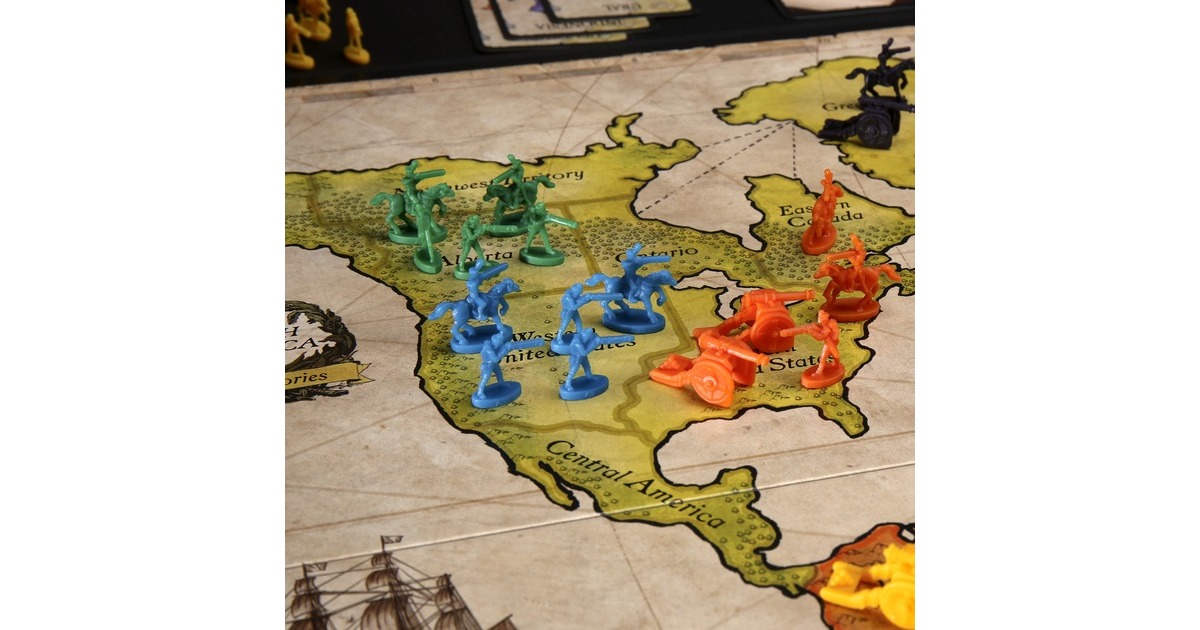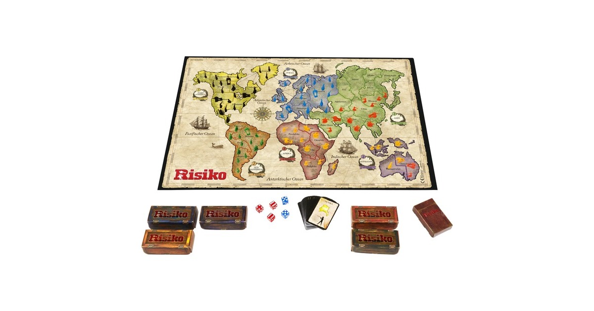 Wer erobert die Welt? Wenn sich 2-5 Spieler ab 10 Jahren einen strategischen Kampf auf dem Spielbrett liefern, ist RISIKO angesagt. Diese Neuauflage des unangefochtenen Brettspielklassikers versetzt die Spieler in eine Zeit mächtiger Befehlshaber, wagemutiger Feldzüge und erschmetternder Kapitulationen. Mit einem aufwendig gestalteten Spielplan in nostalgischem Look, detailreichen Spielfiguren, geheimen Missionskarten und Kartonkisten als praktische Materiallager ist diese Edition des berühmten Strategiespiels ein Must-have für Retro- und Risiko-Fans. Bei Risiko setzen die Spieler ihre Armeen taktisch klug auf das Spielbrett, um diese Gebiete strategisch geschickt zu besetzen. Doch während sie versuchen, weitere Ländereien zu erobern, sind die gegnerischen Armeen schon in Stellung. Mit Infanterie, Kavallerie und Artillerie marschieren sie ein und greifen an. Eine riskante Schlacht beginnt und da die Kämpfe mit Würfeln ausgefochten werden, weiß niemand, welche unvorhersehbaren Ereignisse eintreffen, und wer am Ende seine Armee zum Sieg führt.Art.-Nr.: 1301718