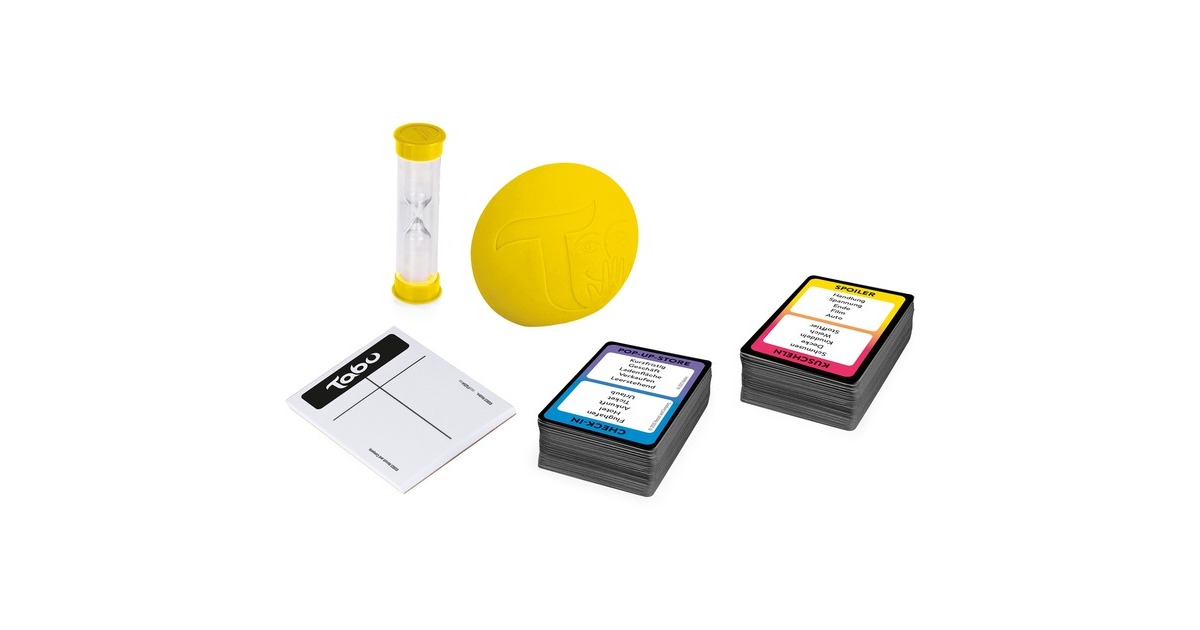 Bei Tabu treten die Spieler in einem rasanten Spiel gegen die Zeit an: Es geht darum, den Mitgliedern des eigenen Teams den gesuchten Begriff auf der Karte zu erklären, ohne selbst die Tabu-Wörter zu verwenden. Diese Version von Tabu warte mit frischen und trendigen Karten auf. Die Spiel haben die Möglichkeit, den webbasierten Timer, Quietscher und Punktezähler zu verwenden oder aber ganz klassisch mit der enthaltenen Sanduhr, dem Tabu-Quietscher und dem Wertungsblock zu spielen.