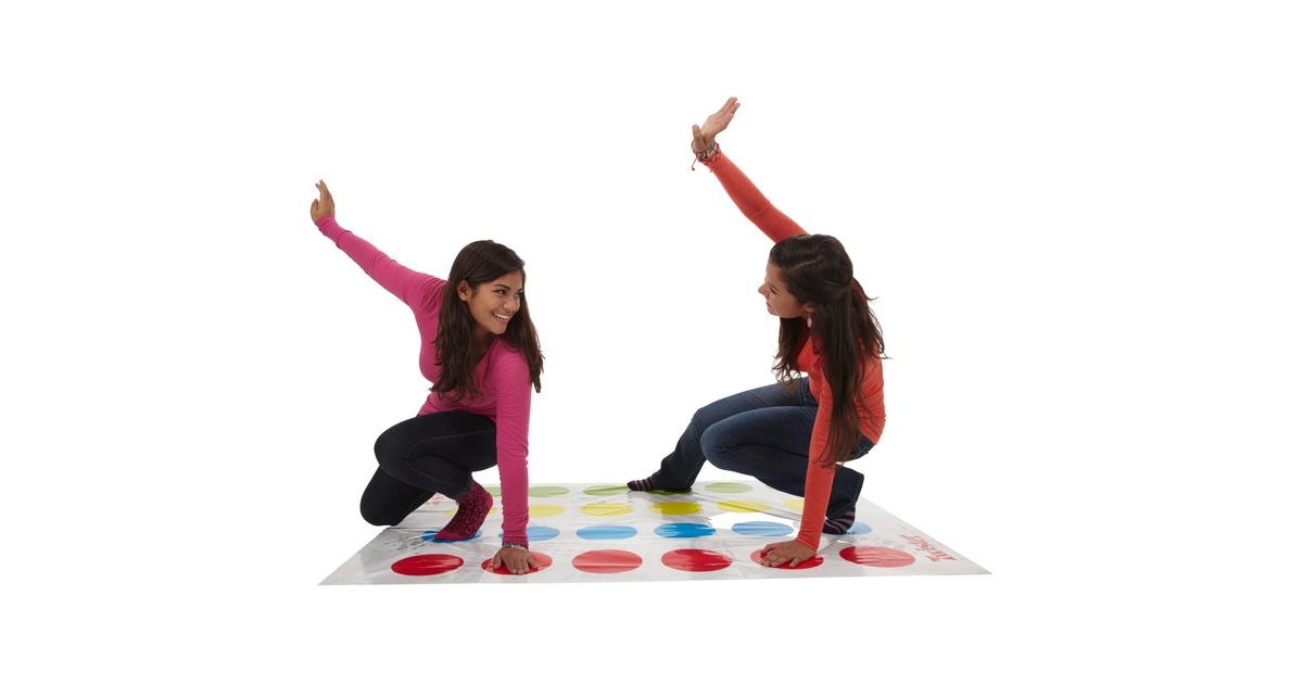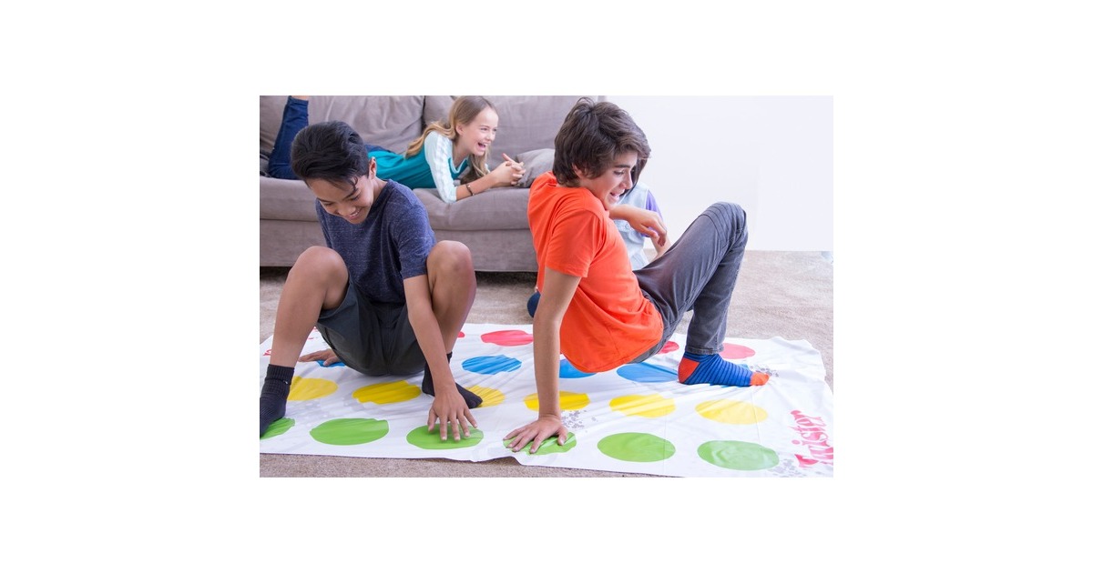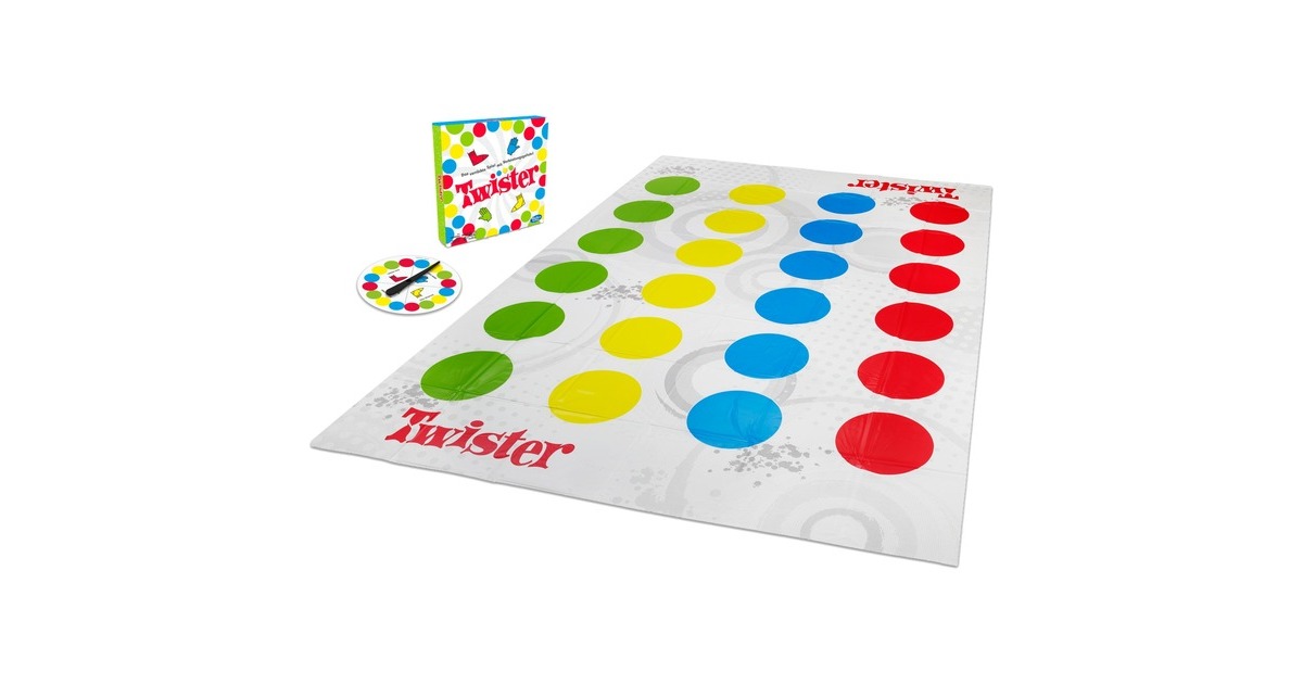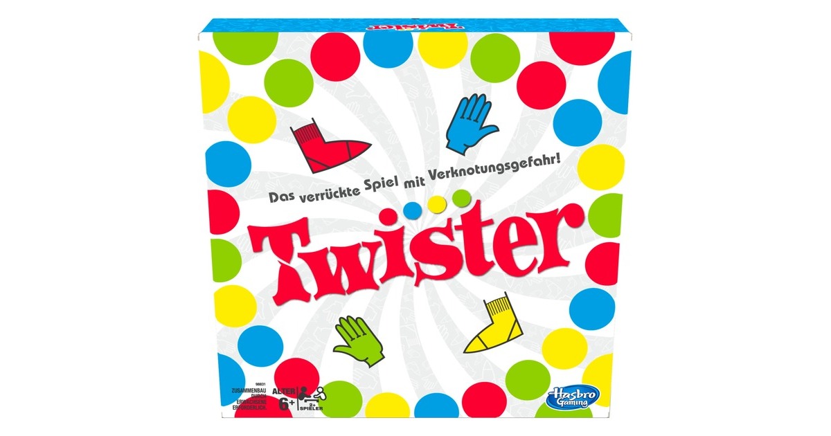 Das bekannte Verrenkungsspiel mit Verknotungsgefahr in neuem Design. Die Drehscheibe gibt wie gewohnt die Position auf der Matte vor. Aber Achtung, zwei neue Elemente auf der Drehscheibe sorgen für einen noch größeren Verknotungsspaß. Der Spieler, der mit den Händen oder Füßen den Kontakt zur Matte verliert, scheidet aus. Art.-Nr.: 1189549