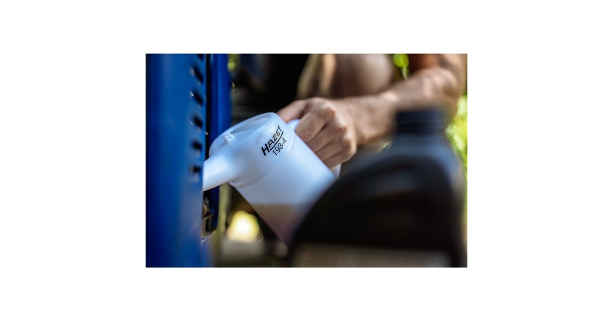 Der Trichter 198-4 von HAZET eignet sich zum Einfüllen von Bremsflüssigkeit, Batterieflüssigkeit und anderen, nicht säurehaltige Flüssigkeiten. Der 1 Liter fassende Messbecher ist aus HDPE gefertigt. Das weiß/ transparente Material lässt den Füllstand durchscheinen.Art.-Nr.: 1748175
