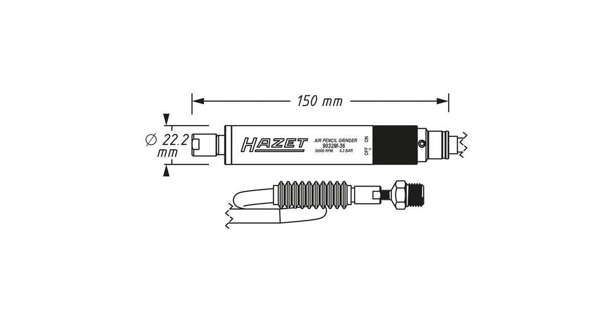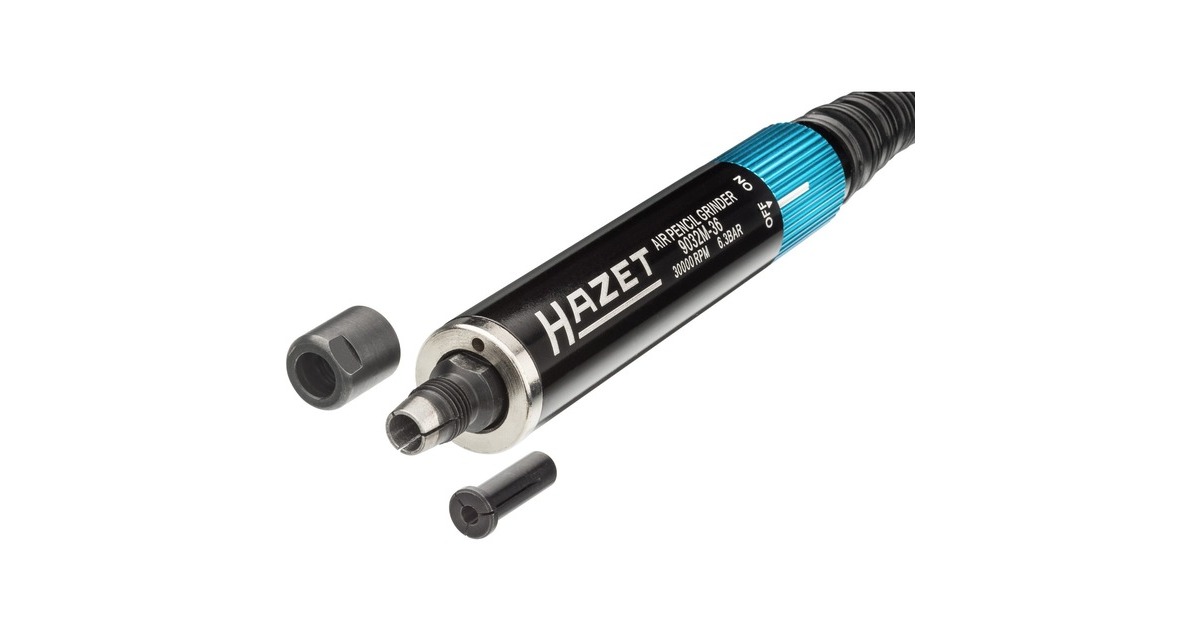 Der Mini-Stabschleifer 9032M-36 von HAZET in gerader Ausführung ist ein leichtes, handliches Gerät zum Schleifen, Glanzschleifen und Entgraten. Er eignet sich zur präzisen Bearbeitung von Werkstücken mit 3mm und 6mm Schleifkörpern auch unter beengten Platzverhältnissen. Der integrierte Abluftschlauch führt die Abluft vom Werkstück weg, dämpft den Schall und sorgt so für einen geräuscharmen Betrieb. Der Mini-Stabschleifer 9032M-36 wird inklusive 1,5 Meter Schlauch geliefert.Art.-Nr.: 1750499