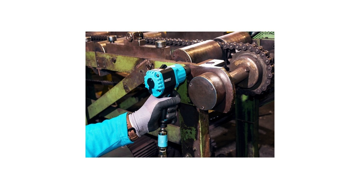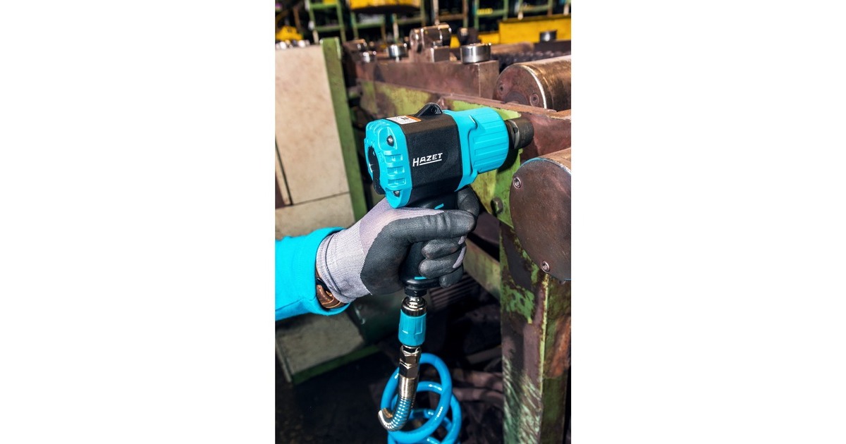 Der Schlagschrauber 9012TT von HAZET ist dank seiner Länge von nur 12,8cm besonders handlich. Die HAZET Twin Turbo Technologie ermöglicht hohe Drehmomente bei besonders kompakter Bauweise. Die Bauweise wurde für Arbeiten in beengten Räumen optimiert. Er verfügt über eine Abluftführung durch den Handgriff nach unten, ist vibrationsarm, besitzt einen kälteisolierenden Griff und ein Hochleistungs-Doppelhammer-Schlagwerk. Der innovative 8-Lamellen Luftmotor mit 25% höherer Schlagleistung sorgt für maximales Drehmoment. Das empfohlene Drehmoment beträgt 948 Nm und der Betriebsdruck 6,3 bar. Der 9012TT bietet einen zweistufigen Rechts- und einstufigen Linkslauf, und überzeugt mit hoher Standzeit und Effizienz bei industriellen und automotiven Anwendungen. Art.-Nr.: 1750482
