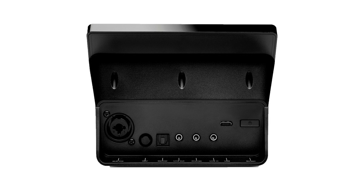 4 Lautstärke-Encoder (mit Stummschaltung), 2 Seiten mit je 4 Spuren + Seitenverwaltungstaste,2 x 2 Stereo-VU-Meter für jede Spur, 1 Umschalttaste für Creator/Audience-Mix, 1 Lautstärkeregler-Link-Taste, 1 Stummschalttaste für alle, 1 Kopfhörerausgang + Lautstärkeregler für Kopfhörer, 1 XLR-Mikrofoneingang, 1 optischer Anschluss, 1 Line-In-Anschluss, 1 Line-Out-Anschluss. |