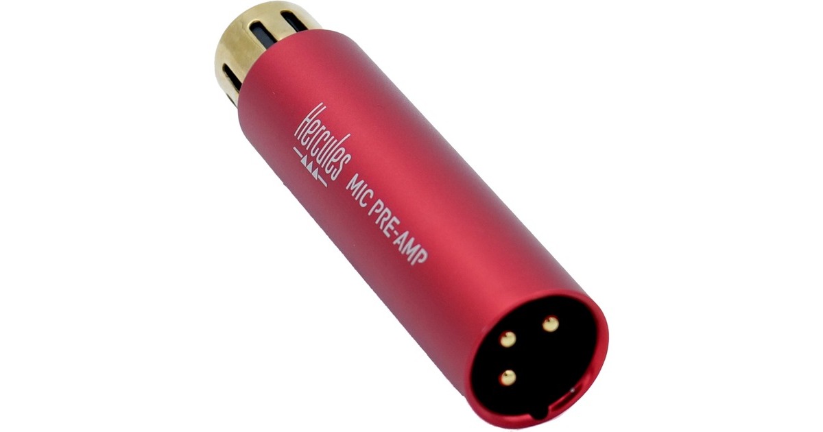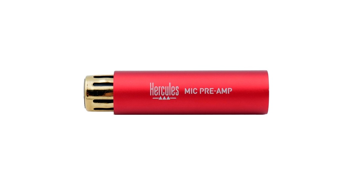 Hercules Mic Pre-amp, USB Stromkabel, Link zum Download der Hercules Stream Control App. |