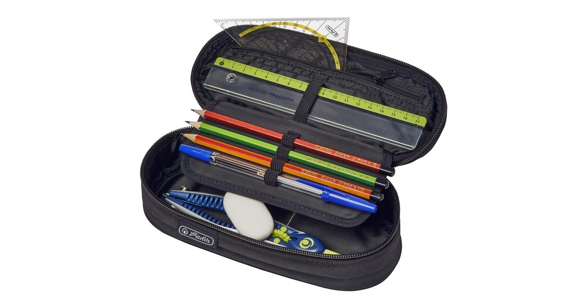 Das Faulenzer Etui von Herlitz überzeugt durch ein großes Hauptfach, in dessen Oberseite zwei Gummibänder integriert sind. Die Gummibänder ermöglichen eine noch bessere Soriermöglichkeit und schnelleren Zugriff auf Stifte, Lineale und Co.Art.-Nr.: 1604951