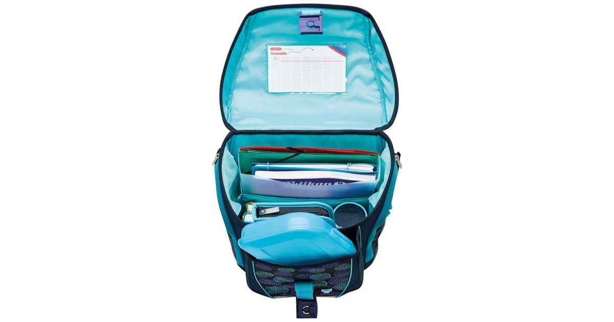 Der Herlitz FiloLight zeichnet sich durch sein geringes Eigengewicht von unter 1 kg aus. Der formstabile Korpus, ein hochwertiges Fidlock Schloss und die sportliche seitliche Taschenaufteilung machen es den Kindern einfach einen guten Überblick über die Schulmaterialien zu behalten und sich schnell zu organisieren. Durch das Rückensystem passt sich der Herlitz FiloLight immer an die sich ändernde Körpergröße des Kindes an. Der Einsatz des ergonomisch geformten Rückenpolsters, welches mit seinem atmungsaktivem Material einen optimalen Tragekomfort bietet, ein abnehmbarer Hüftgurt sowie verstellbare Schulter- und Brustgurte sorgen für eine komfortable und angenehme Passform, hohe Flexibilität und große Anpassungsmöglichkeiten. Auch in puncto Sicherheit überzeugt der Herlitz FiloLight. Das hochwertige Reflexmaterial auf Front- und Seitenbereich sowie den Schultergurten und an der Deckelklappe sorgt für ein hohes Maß an Sichtbarkeit und Sicherheit in der Dunkelheit.Art.-Nr.: 1815466