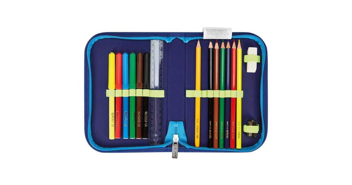 inkl. 16 tlg. Schüleretui mit mit FSC zertifizierten Bunt- und Bleistiften, Faulenzermäppchen, Sportbeutel |