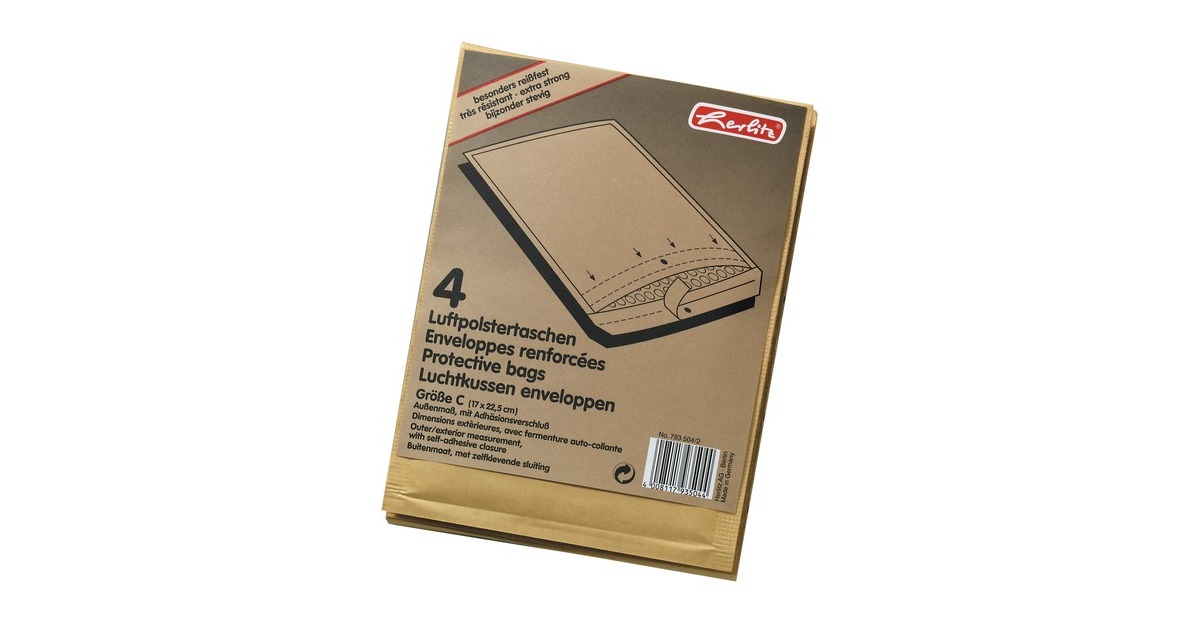 Die braune Herlitz Luftpolstertasche C ist haftklebend (Trifix) und besitzt die Außenmaße 17 x 22 cm und die Innenmaße 15 x 21 cm. Pro Packung sind vier Stück enthalten.Art.-Nr.: 1264703| EAN | 4008117935044 |