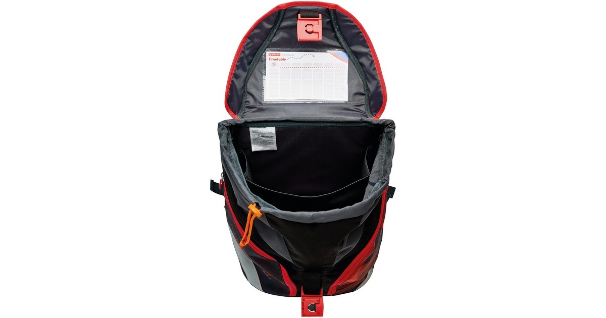 Seitenfach, Innenfach mit integriertem Buchfach, zwei Seitentaschen |