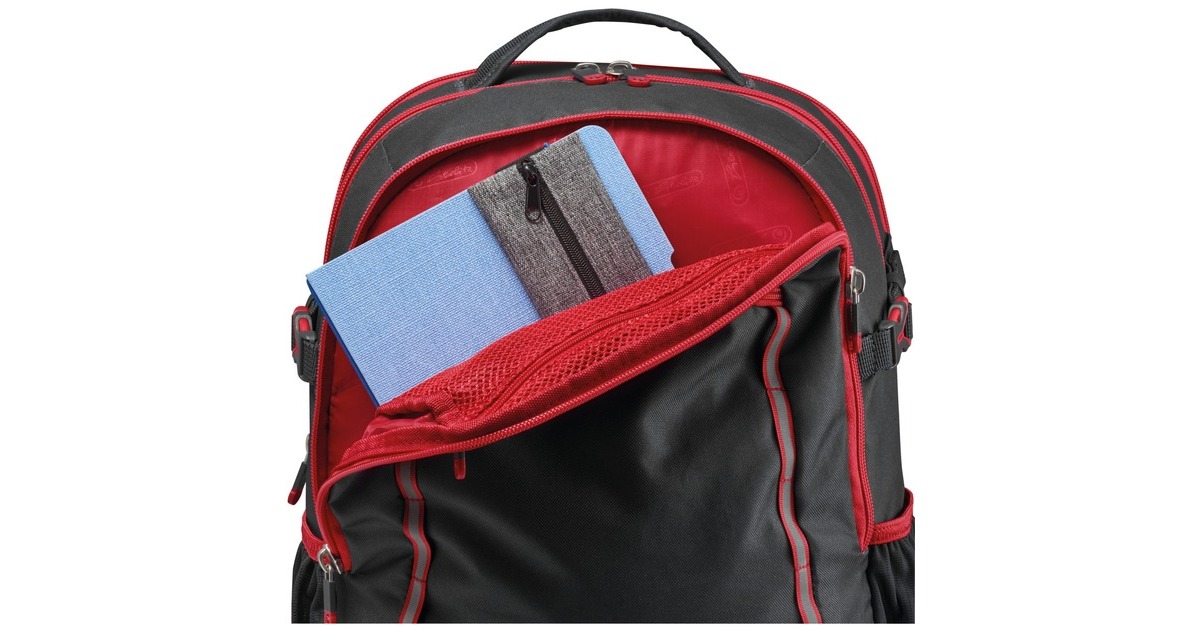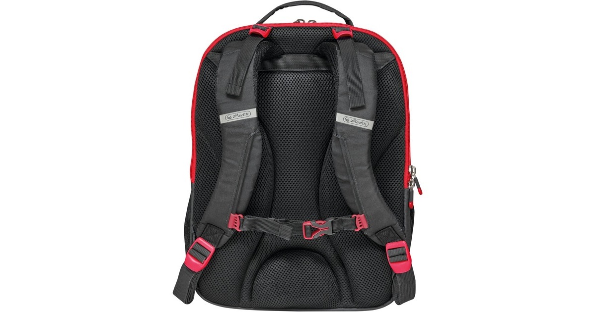Der Herlitz Ultimate kommt mit einem ergonmisch geformten, atmungsaktiven Rückenpolster, 2-fach verstellbaren Schultergurten sowie einem höhenverstellbaren Brustgurt, um für volle Flexibilität und Tragekomfort zu sorgen. Aus recycelten PET Flaschen hergestellt sieht dieser sportliche Rucksack mit wasserfester Imprägnierung, Kunststoff-Füßen und drei großräumigen Innenfächern mit ausgefallenem zweifarbigem Reißverschluss besonders cool aus. Die Kompressionsgurte zur einfachen Volumenregulierung helfen dabei, schwere Materialien näher an den Rücken zu bringen. Das Reflexmaterial an der Front, den Seiten und Schultergurten sorgen für ein hohes Maß an Sichtbarkeit bei Dunkelheit. Der verstärkte Boden mit Kunststoff-Füßen sorgt für einen stabilen Stand.Art.-Nr.: 1815421