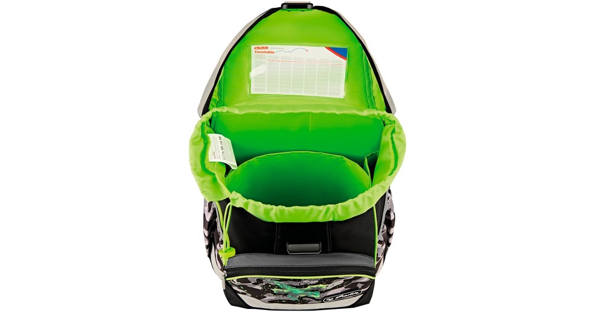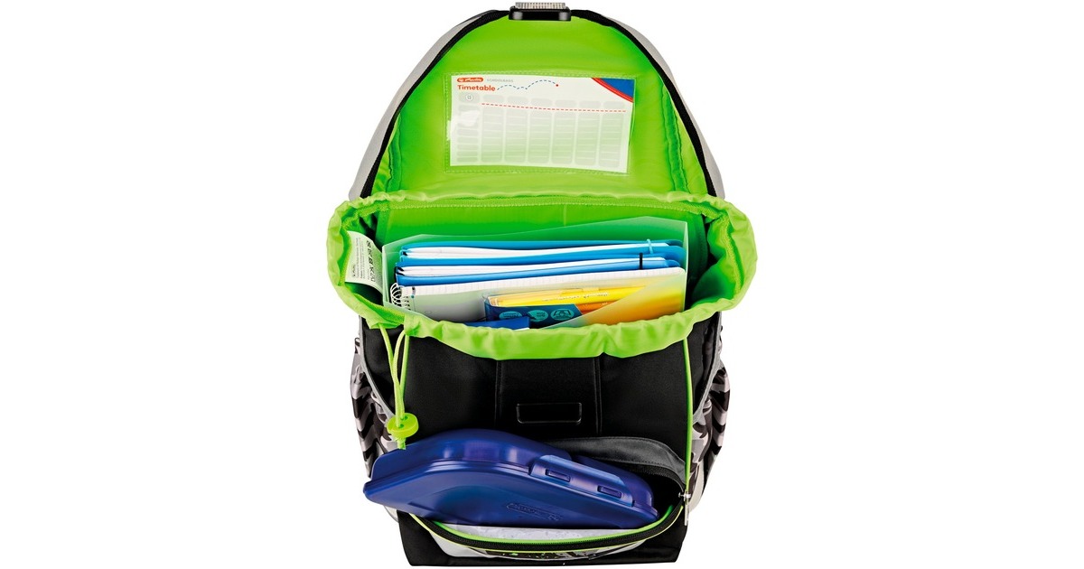 Der UltraLight ist ein besonders leichter Schulranzen, der durch seinen weichen Korpus Tunnelzugverschluss hohe Flexibilität und schnelle Regulation des Volumens bietet. Mit seinem geringen Eigengewicht von ca. 750 Gramm ist dieses Modell ein absolutes Leichtgewicht. Durch sein ergonomisch geformtes Rückenpolster mit verstellbaren Schultergurten und einem höhenverstellbaren Brustgurt bietet der UltraLight einen hohen Tragekomfort und passt sich dem Rücken optimal an. Auf dem Schulweg sorgen Reflexmaterialien auf der Vorderseite, den Seitentaschen und den Schultergurten sowie ein zusätzlicher Reflektor im Schloss für schnelle Sichtbarkeit im Straßenverkehr. Mit dabei sind zwei austauschbare Klett-Motive auf der Deckelkappe, die sich ganz einfach nach Belieben auswechseln lassen.Art.-Nr.: 1878132