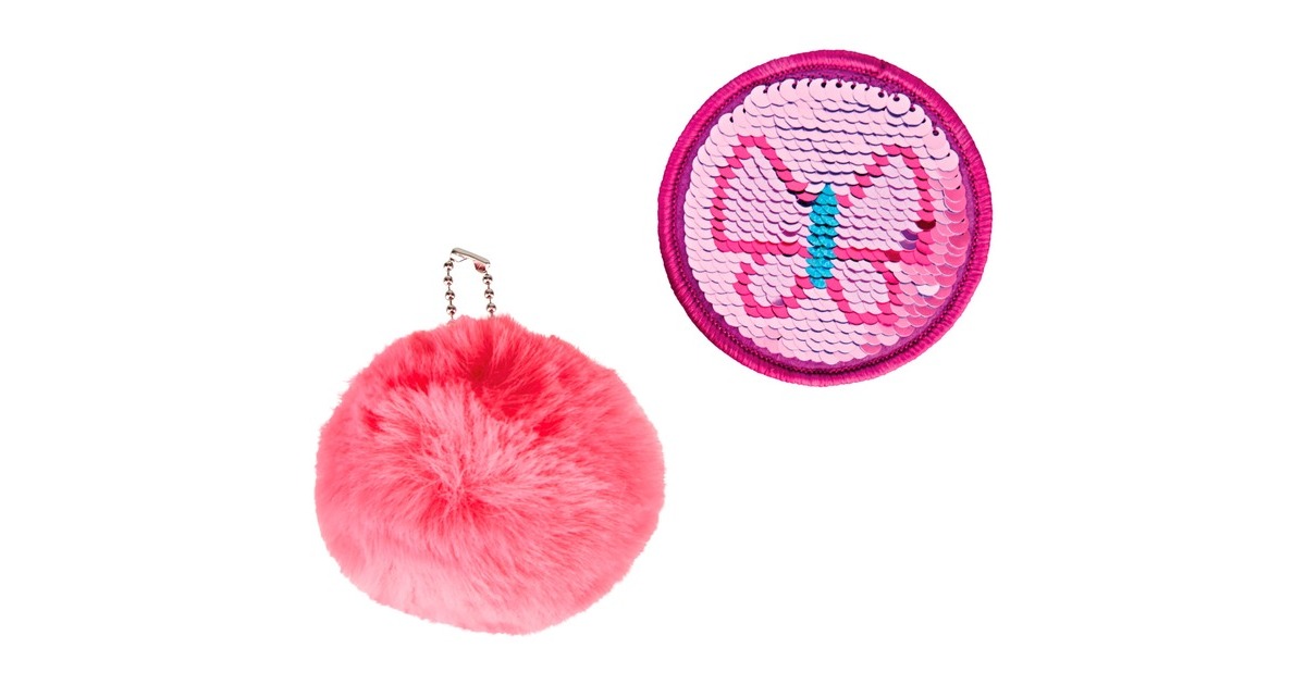 Schüleretui mit 16 Teilen, rundes Faulenzermäppchen, Sportbeutel, zwei austauschbare Applikationen mit Klettbefestigung (alles im passenden Look) | stabiler Boden mit Kunststoff-Füßen |
