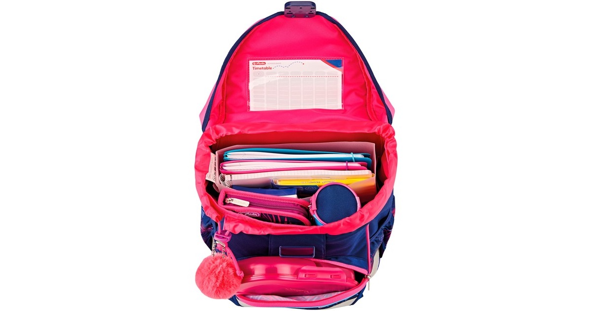 Der UltraLight ist ein besonders leichter Schulranzen, der durch seinen weichen Korpus Tunnelzugverschluss hohe Flexibilität und schnelle Regulation des Volumens bietet. Mit seinem geringen Eigengewicht von ca. 750 Gramm ist dieses Modell ein absolutes Leichtgewicht. Durch sein ergonomisch geformtes Rückenpolster mit verstellbaren Schultergurten und einem höhenverstellbaren Brustgurt bietet der UltraLight einen hohen Tragekomfort und passt sich dem Rücken optimal an. Auf dem Schulweg sorgen Reflexmaterialien auf der Vorderseite, den Seitentaschen und den Schultergurten sowie ein zusätzlicher Reflektor im Schloss für schnelle Sichtbarkeit im Straßenverkehr. Mit dabei sind zwei austauschbare Klett-Motive auf der Deckelkappe, die sich ganz einfach nach Belieben auswechseln lassen.Art.-Nr.: 1878131