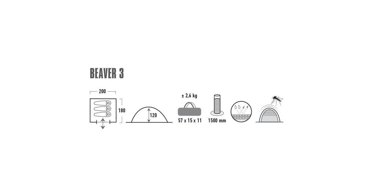 Das Kuppelzelt Beaver 3 von High Peak ist ein freistehendes Einfachdach-Kuppelzelt mit wetterfestem Vordach für bis zu drei Personen. Weil das Vordach über Aufstellstäbe und eine Windschutzblende verfügt, ist es möglich, die Natur und Tierwelt auch bei schlechtem Wetter zu beobachten. Der angenähte Zeltboden verhindert das Eindringen von Schmutz und Feuchtigkeit. Die Innenzelttaschen für Utensilien und ein praktischer Lampenhalter für eine Campinglaterne oder eine Taschenlampe machen das Beaver sehr komfortabel. Die signalroten Abspannleinen sind auch in der Dämmerung noch gut zu erkennen. Die Nähte sind mit Nahtband wasserdicht versiegelt und bieten eine bessere Naht-Reißfestigkeit. Das Beaver 3 in der Farbe schwarz ist ein "must have" für Rockfestivals.Art.-Nr.: 1593541