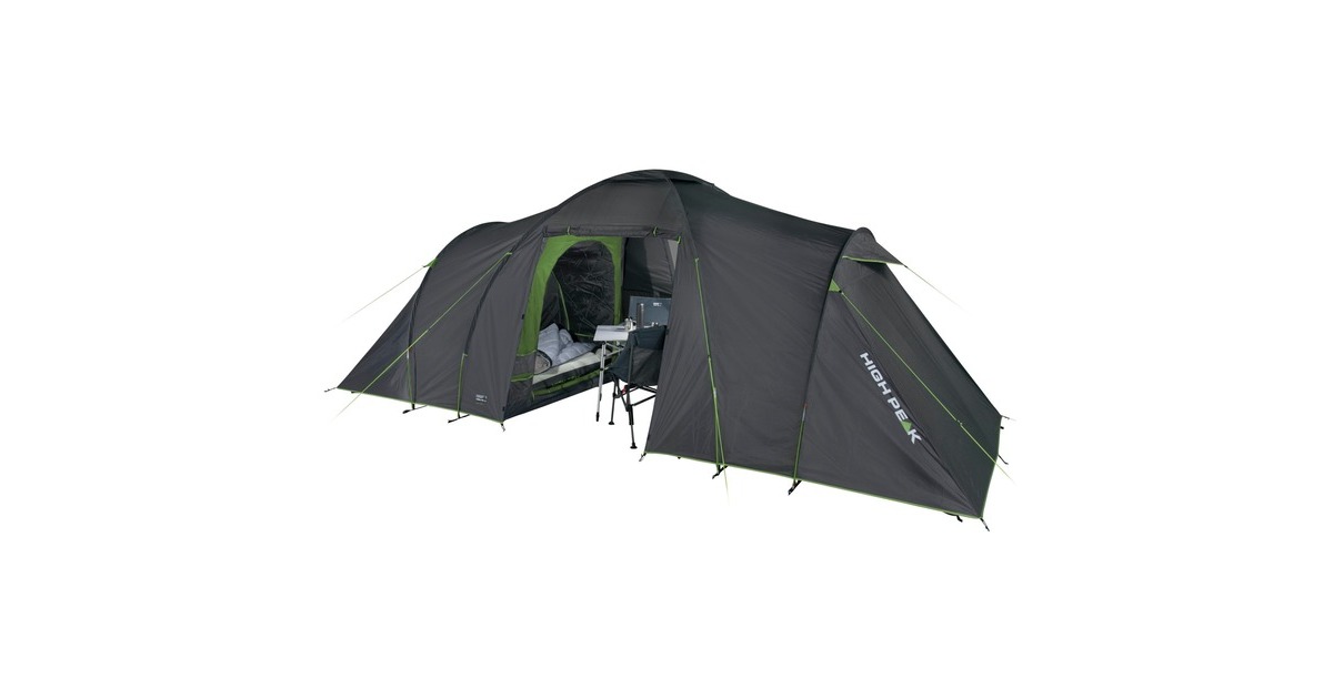 Das Como 6.0 von High Peak ist ein Kuppelzelt mit zwei gegenüberliegenden Schlafkabinen, zwei Lampenhaltern und abgedunkelten Innenzelten. Zwischen den Kabinen befindet sich eine Wohnkuppel mit 2 Metern Stehhöhe. Die beiden räumlich getrennten Schlafkabinen bieten viel Privatsphäre, ein Eigenheim für die Kinder, oder ein Gästezimmer, wenn Freunde zu Besuch kommen. Das Außenzelt wird zuerst aufgebaut und dann im zweiten Schritt die Innenzelte eingehängt. Das hat den Vorteil, dass die Innenzelte während des Aufbaus bei regnerischem Wetter trocken bleiben. Die Positionsmarkierung, passend zum Außenzelt, erleichtert dabei das Einhängen. Tagsüber kann man ein Innenzelt aushängen und damit den Wohnraum vergrößern, das ist ideal bei schlechtem Wetter. Oder man hängt eine Kabine aus und die Fahrradgarage ist fertig. Die Eingänge mit Moskitonetzen ermöglichen eine optimale Belüftung und gleichzeitig Insektenschutz. Die Nähte sind mit Nahtband wasserdicht versiegelt und bieten eine bessere Naht-Reißfestigkeit. Die farblich grün abgestimmten Gestänge passen gut zur grünen Paspelierung im Bodenbereich. Die sehr stabilen 5mm Stahl-Erdnägel verbiegen sich auch bei hartem Untergrund nicht. Das Multitalent Como 6.0 ist für Familien-Camping, -Touren oder Grillwochenenden mit Freunden bestens geeignet und bietet Platz für sechs Personen mit Gepäck.Art.-Nr.: 1786667