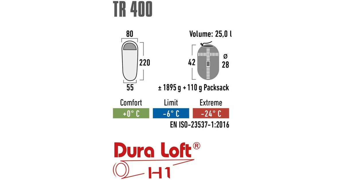 Die Temperaturangaben wurden gemäß Schlafsacknorm EN 23537 ermittelt |