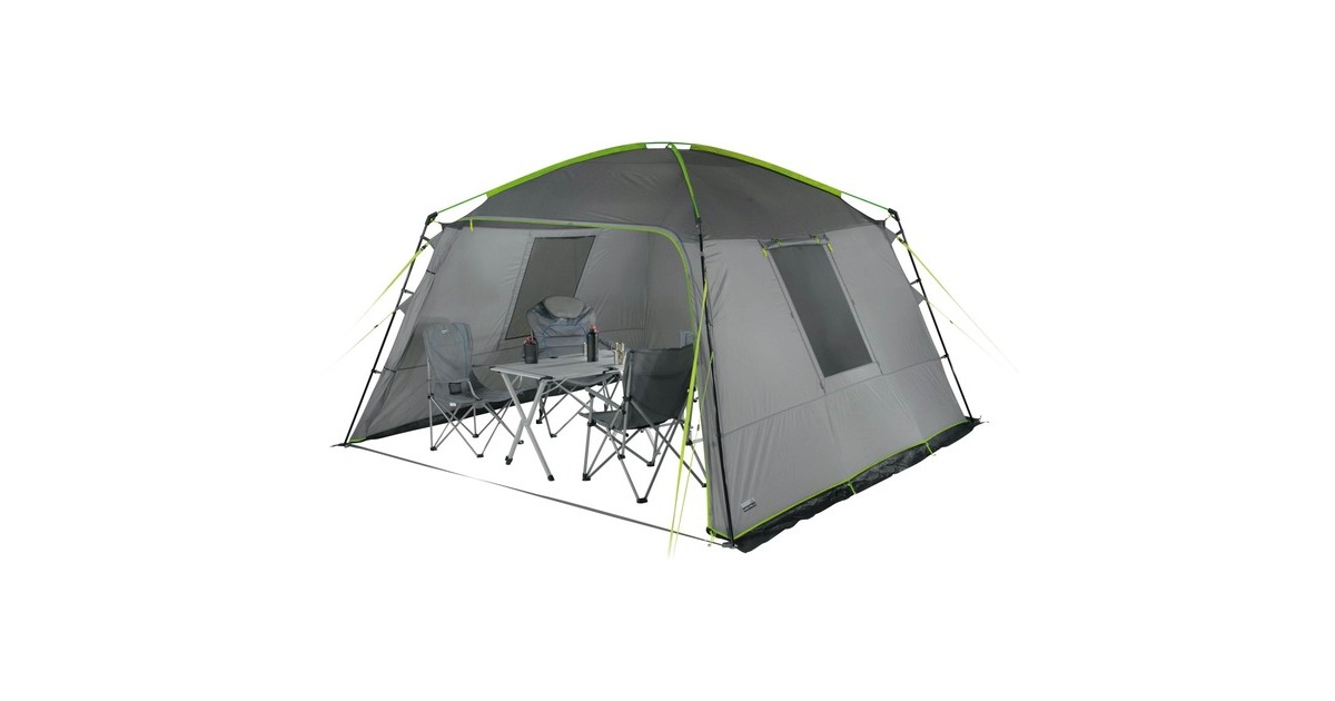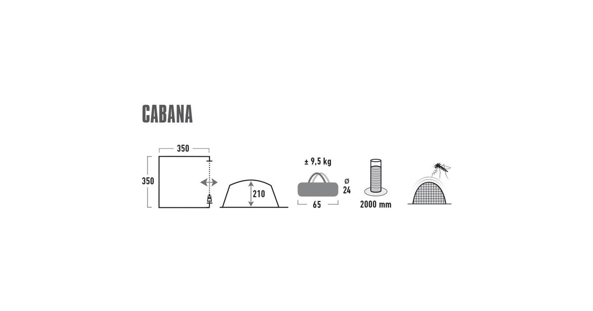 Der freistehende Pavillon Cabana 14052 von High Peak bietet auf 12,25m² viel Platz und Schutz vor Sonne, Regen und Wind. Die Reißverschluss-Verandafront lässt sich je nach Wetterlage halb oder komplett öffnen, und ein Klarsichtfolienfenster mit Abdeckung bringt Licht in den Innenraum. Zwei große Moskitonetz-Fenster mit Reißverschluss-Abdeckklappen belüften den Wohnbereich und halten gleichzeitig Insekten fern. Die Dauerventilation belüftet auch an regnerischen Tagen und sollte immer geöffnet sein. Der Rundum Faulstreifen hält Schmutz und Feuchtigkeit ab. Das Stahlgestänge, kombiniert mit Dach- Fiberglasbögen und ABS Kunststoffwinkeln, bietet eine optimale Raumausnutzung. Die vier neongelben verstellbaren Sturmbänder und Abspannleinen sind auch in der Dämmerung gut sichtbar. Die sehr stabilen 5mm Stahl-Erdnägel und V-Heringe verbiegen sich auch bei hartem Untergrund nicht. Die Nähte sind mittels Nahtband wasserdicht versiegelt und gewähren eine bessere Naht-Reißfestigkeit. Mit Tragetasche, kleinem Packmaß und schnellem Aufbau ist der Pavillon Cabana ein ideales Basislager für Festivals, geräumiges Partyzelt, Gerätezelt für Garten und Campingplatz oder ein Versorgungszelt für Jugendgruppen.Art.-Nr.: 1692140