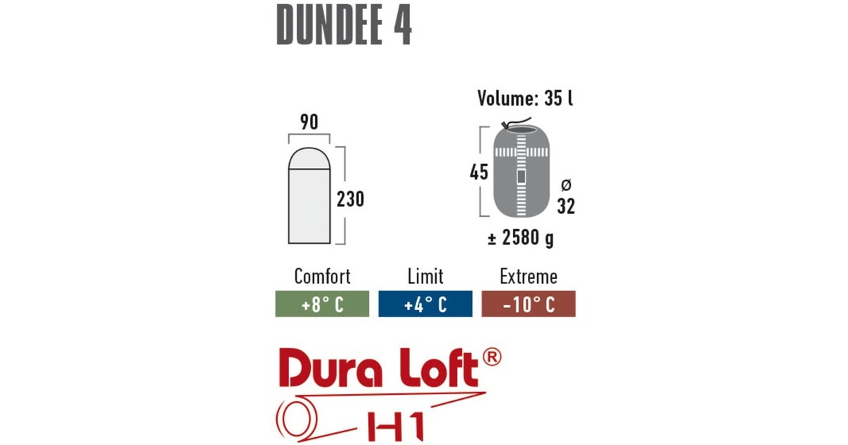 Der Deckenschlafsack Dundee 4 vereint höchsten Schlafkomfort und Funktion für Camping und Wohnwagen. Hochwertigste Materialien kommen zum Einsatz. Außenbezug und Innenbezug sind aus edlem, atmungsaktivem Baumwoll-Mischgewebe, 65 % Polyester / 35 % Baumwolle. Die sehr robuste und bewährte Dura Loft H1 Füllung aus 6D reißfester Vollfaser und mindestens 30 % wärmespeichernder 6D Hohlfaser ermöglicht beste Wärmeisolierung. Art.-Nr.: 1490184