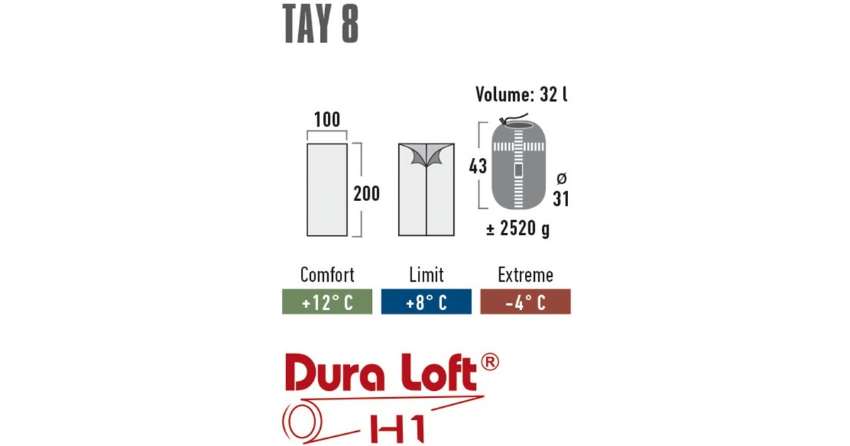 Der Deckenschlafsack Tay 8 vereint höchsten Schlafkomfort und Funktion für Camping und Wohnwagen. Hochwertigste Materialien kommen zum Einsatz. Außenbezug und Innenbezug sind aus edlem, atmungsaktivem Baumwoll-Mischgewebe, 65 % Polyester / 35 % Baumwolle. Die sehr robuste und bewährte Dura Loft H1 Füllung aus 6D reißfester Vollfaser und mindestens 30 % wärmespeichernder 6D Hohlfaser ermöglicht beste Wärmeisolierung. Art.-Nr.: 1490256