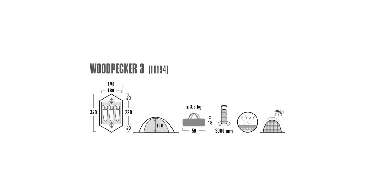 Das freistehende Trekking-Kuppelzelt Woodpecker 3 von High Peak ist ein klassisches Kuppelzelt für drei Personen, jedoch mit zwei Eingängen, die beide einen praktischen wettergeschützten Stauraum für Gepäck und Ausrüstung bieten. Zwei Dauerventilationen mit Abstandhalter bringen frische Luft in den Innenraum. Das Woodpecker 3 lässt sich einfach aufbauen, und eignet sich für Wochenendtouren, Festivals oder längere Ausflüge. Der rote Bodenstreifen ist auch in der Dämmerung gut sichtbar.Art.-Nr.: 1490110