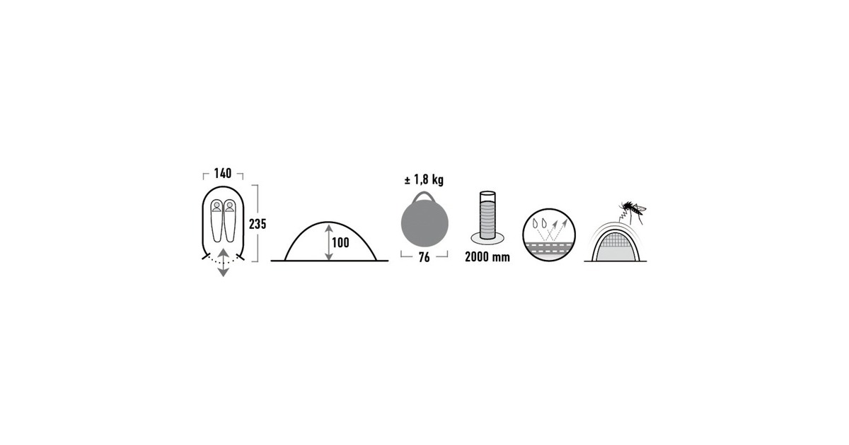 Das Wurfzelt Vision 2 von High Peak ist schnell aufgebaut und bietet Platz für zwei Personen mit leichtem Gepäck. Die integrierten Gestänge formen den Boden und somit ist ein zusätzliches Abspannen der Ecken nicht nötig. Die Nähte sind mittels Nahtband wasserdicht versiegelt und gewähren eine höhere Naht-Reißfestigkeit. Die durchgehende gleiche Höhe vermittelt ein komfortables Raumgefühl. Der Eingang mit Moskitonetzfenster hält lästige Plagegeister fern. Die drei Dauerventilationen sorgen für angenehmes Klima und sollten immer geöffnet sein. Ideal für Wochenend-Camping, Festivals und Garten.Art.-Nr.: 1370389