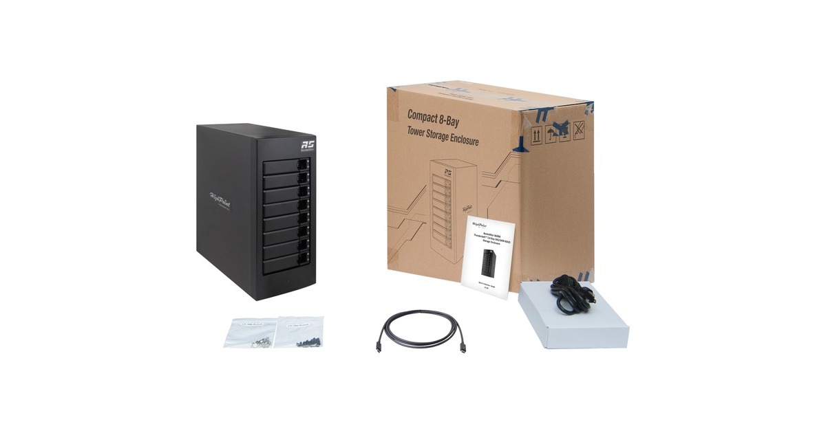 integrierte SAS/SATA Hardware RAID-Technologie, Kapazität bis zu 8x 10 TB, High Speed Storage bis zu 8x SSD, Blazing Fast, Consistent und Smooth Data Transfer für Applikationen mit großer Block Größe, erweiterte Storage Cooling Lösung, Daisy Chain bis zu 6 Geräte, Einbau bis zu 8x 2,5" oder 3,5" SAS/SATA-Festplatten oder SSDs |