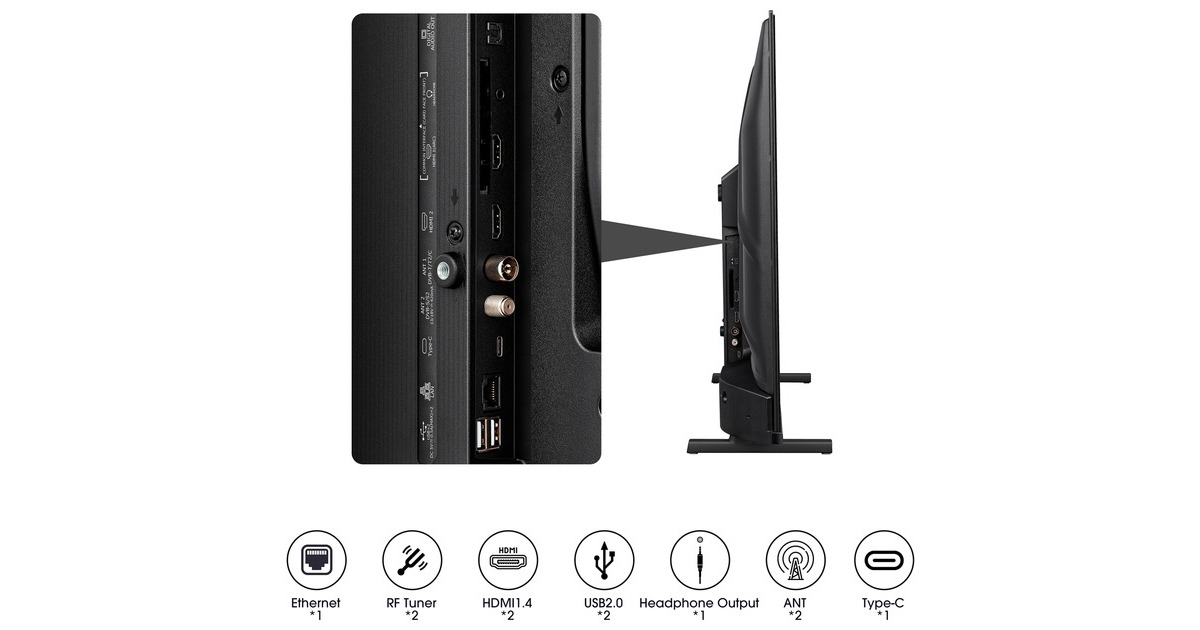 1x Antenne-In, 1x LNB-In, 2x HDMI-Eingang, (HDMI-Version: 1.4), 1x VideoCinch-Eingang, 1x Kopfhörer-Ausgang, 2x USB-A-2.0, 1x USB-C, 1x RJ 45, 1x CI+, 1x Optisch-Out |