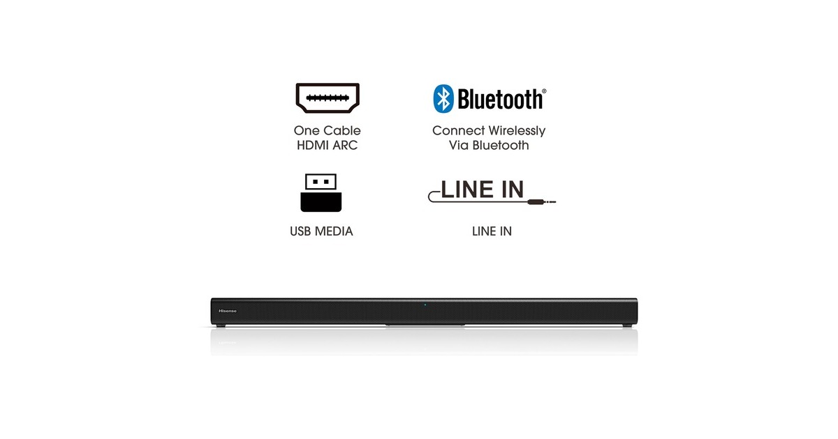 Die Hisense HS205G 2.0-Kanal-Soundbar bietet unglaublichen Sound in einem kompakten und eleganten Formfaktor. Über den HDMI-Anschluss (ARC) lässt sich sowohl der Roku-Fernseher als auch die Soundbar mit der Roku-Fernbedienung steuern. Auch lässt sie sich mit mobilen Geräten, wie Smartphone, Tablet oder Laptop, drahtlos über Bluetooth 5.0 verbinden, um schnell und komfortabel Musik zu genießen. Die HS205G ist eine einfache Audio-Alternative, die ein großartiges Unterhaltungserlebnis bietet.Art.-Nr.: 1908355
