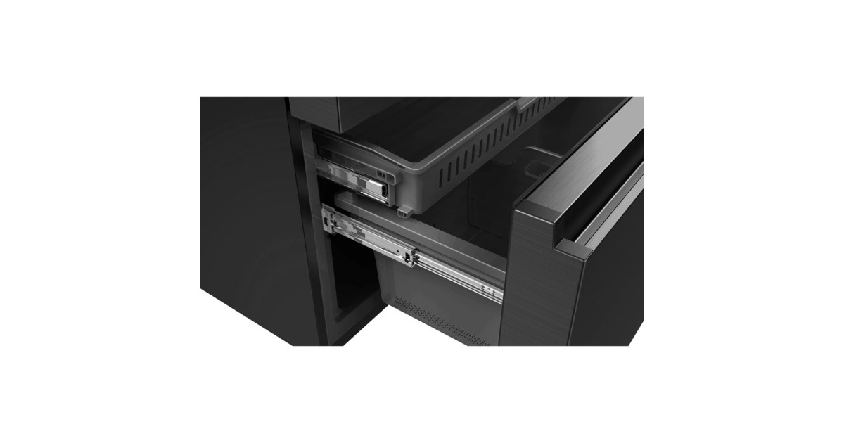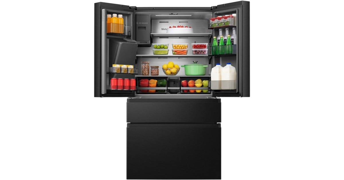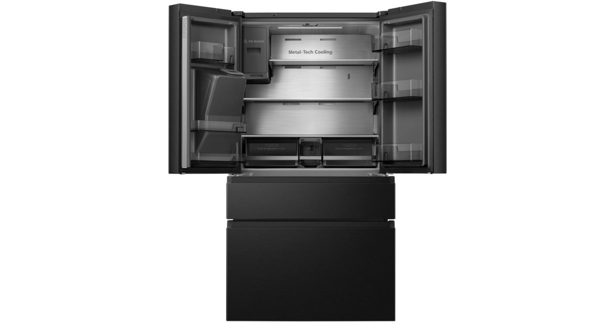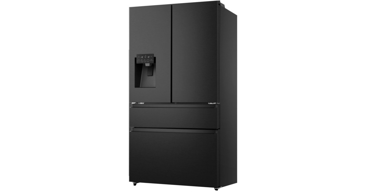 Der French-Door-Kühlschrank Hisense RF728N4SBFE besticht mit seinem großzügigen Gesamtnutzinhalt von 650 Litern und zahlreichen Funktionen. Das 329 Liter umfassende Kühlteil ist mit drei Abstellflächen aus Sicherheitsglas, zwei Obst-/Gemüseschubladen, sowie sechs Türfächern für die übersichtliche Lagerung frischer Lebensmittel ausgestattet. Das Gefrierteil bietet einen Nutzinhalt von 231 Litern und stellt drei Gefrierschubladen zur Verfügung. Die No-Frost-Technologie sorgt für eine intensive Zirkulation der kalten Luft und verhindert somit Eisbildung, wodurch manuelles Abtauen der Vergangenheit angehört. Das einzigartige My Fresh Choice-Fach erlaubt Nutzern, die Temperatur von -20 °C bis +5 °C individuell einzustellen und damit dessen Funktion frei zu wählen. Das MultiAirflow-System sorgt für eine gleichmäßige Verteilung der kühlen Luft und eine konstante Temperatur im gesamten Kühlschrankinnenraum. Mit einem Stromverbrauch von 344 kWh im Jahr ist der RF728N4SBFE in die Energieeffizienzklasse E eingestuft.Art.-Nr.: 1911256