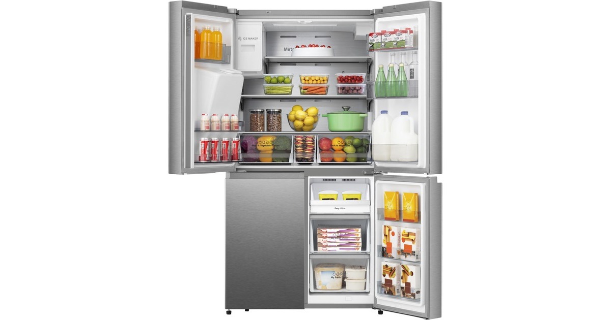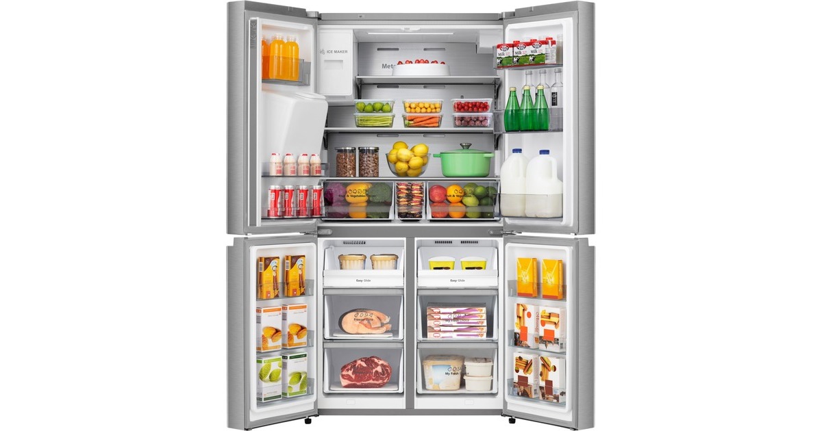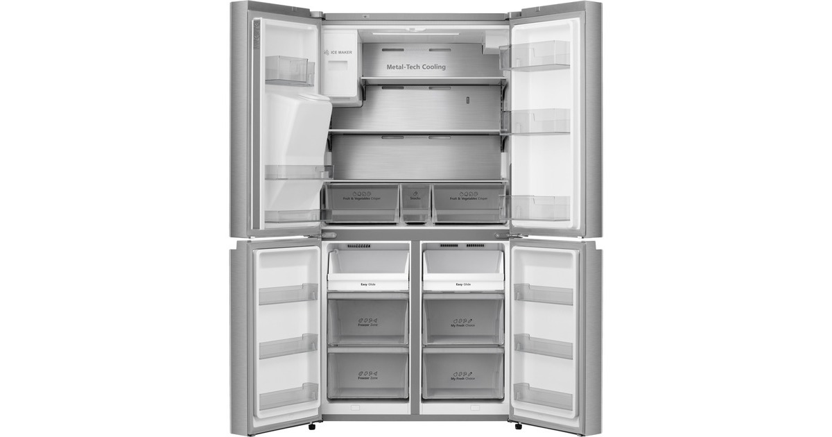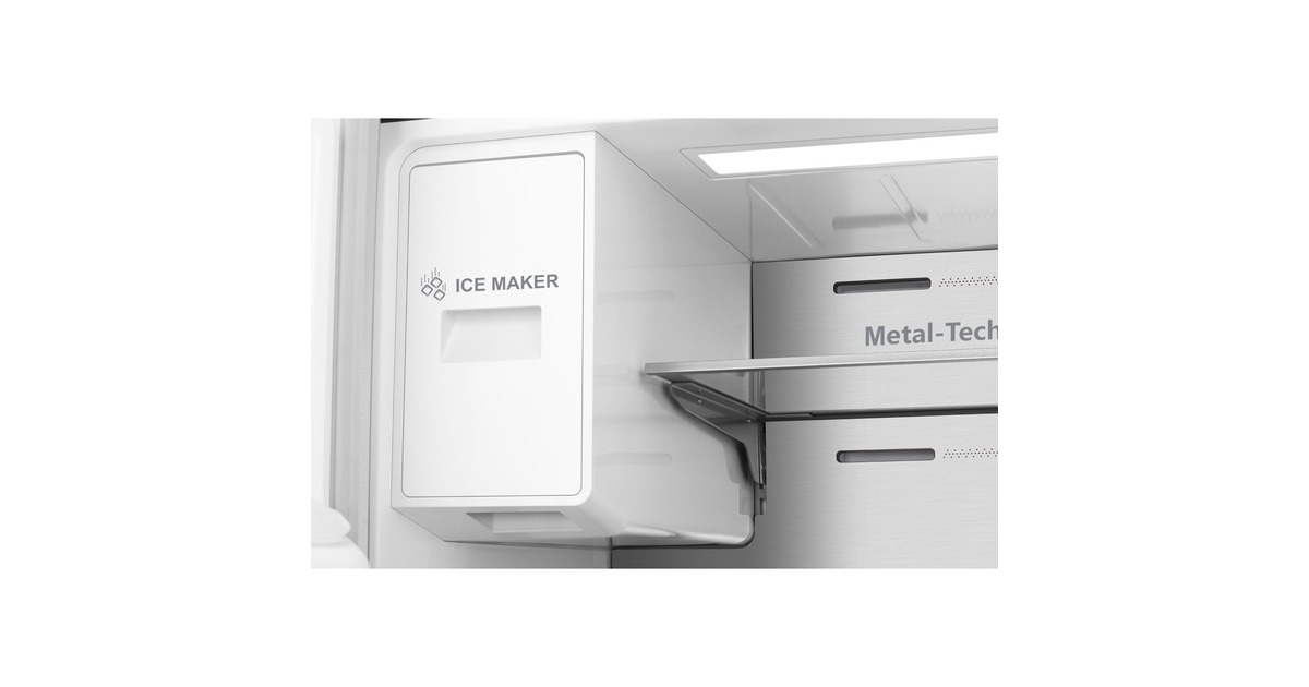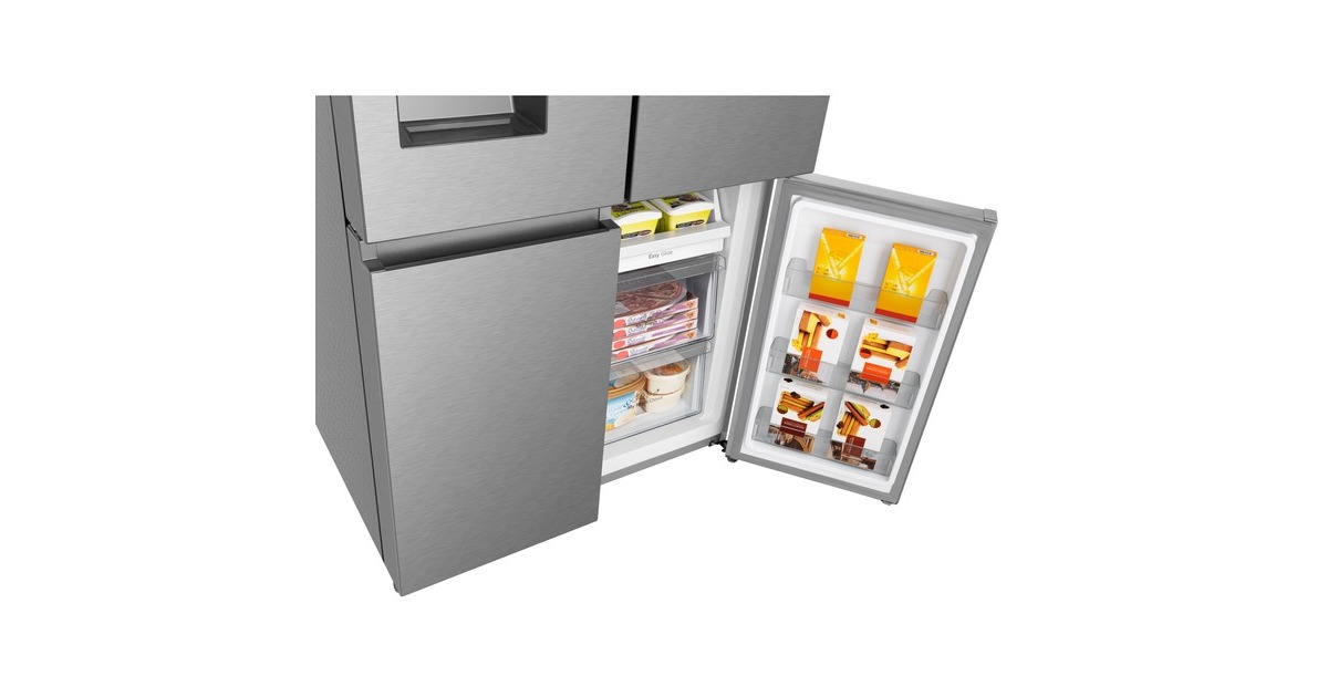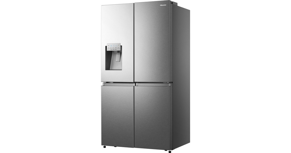 Der French-Door-Kühlschrank Hisense RQ760N4AIE besticht mit seinem großzügigen Gesamtnutzinhalt von 584 Litern und zahlreichen Funktionen. Das 352 Liter umfassende Kühlteil stellt zwei Glasabstellflächen, zwei Obst-/Gemüseschubladen, eine FreshZone sowie sechs Türfächern zur übersichtlichen Lagerung frischer Lebensmittel und Getränke zur Verfügung. Das Gefrierteil hat ein Volumen von 232 Liter und bietet mit seinem Multi-Schubladen-Design sowie sechs Türfächern jede Menge Platz für Tiefkühlkost. Dank NoFrostPlus muss man sich keine Gedanken mehr über das Abtauen machen und Multiflow 360° sorgt für eine optimale Luftzirkulation im gesamten Gerät. Das von außen zugängliche LED-Display zeigt auf einen Blick die eingestellte Temperatur und alle wichtigen Funktionen, wie SuperKühlen, SuperGefrieren, die Urlaubsschaltung und den EcoMode. Der Wasserspender mit Festwasseranschluss hält stets gekühltes Wasser auf Knopfdruck bereit. Mit einem Stromverbrauch von 352 kWh im Jahr ist der RQ760N4AIE in die Energieeffizienzklasse E eingestuft.Art.-Nr.: 1880959