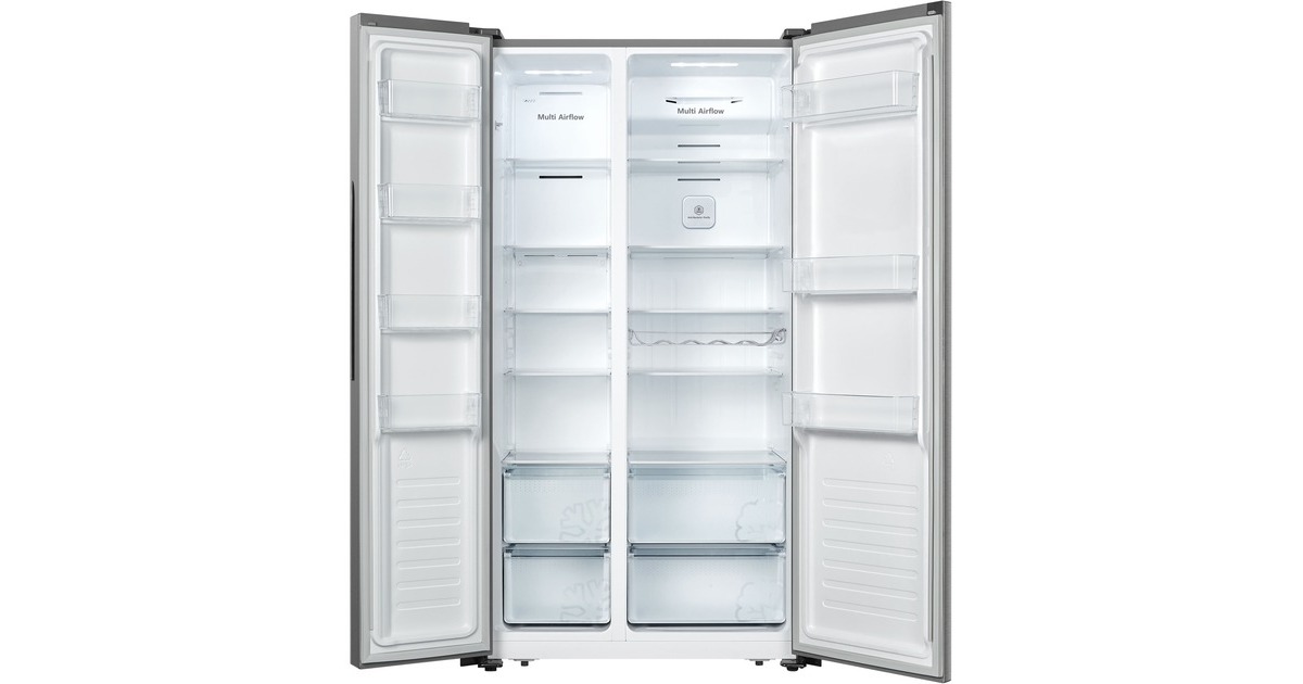 Der Sidy-By-Side Hisense RS677N4BID besticht mit seinem großzügigen Gesamtnutzinhalt von 519 Litern und zahlreichen Funktionen. Das 334 Liter umfassende Kühlteil stellt vier Glasabstellflächen, zwei Obst-/Gemüseschubladen sowie drei Türfächern zur übersichtlichen Lagerung frischer Lebensmittel zur Verfügung. Das Gefrierteil bietet einen Nutzinhalt von 185 Litern und ist ebenfalls mit vier Abstellflächen, zwei Gefrierschubladen sowie vier Türfächern ausgestattet. Die NoFrostPlus-Technologie sorgt für eine intensive Zirkulation der kalten Luft und verhindert somit Eisbildung, wodurch manuelles Abtauen der Vergangenheit angehört. Das von außen zugängliche LED-Display zeigt auf einen Blick alle wichtigen Funktionen, wie SuperKühlen und SuperGefrieren, die das Einlagern wärmerer Lebensmittel besonders effizient machen. Mit einem Stromverbrauch von 247 kWh im Jahr ist der RS677N4BID in die Energieeffizienzklasse D eingestuft.Art.-Nr.: 1795960