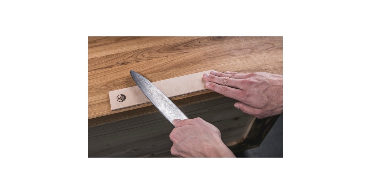 Das original HORL Abziehleder aus pflanzlich gegerbtem Rindsleder sorgt für ein Profi-Finish nach jedem Schleifen. Durch die feinporige Oberfläche wird die Schneide optimal von feinsten Schleifresten befreit.Art.-Nr.: 1621766| EAN | 0767523577395 |