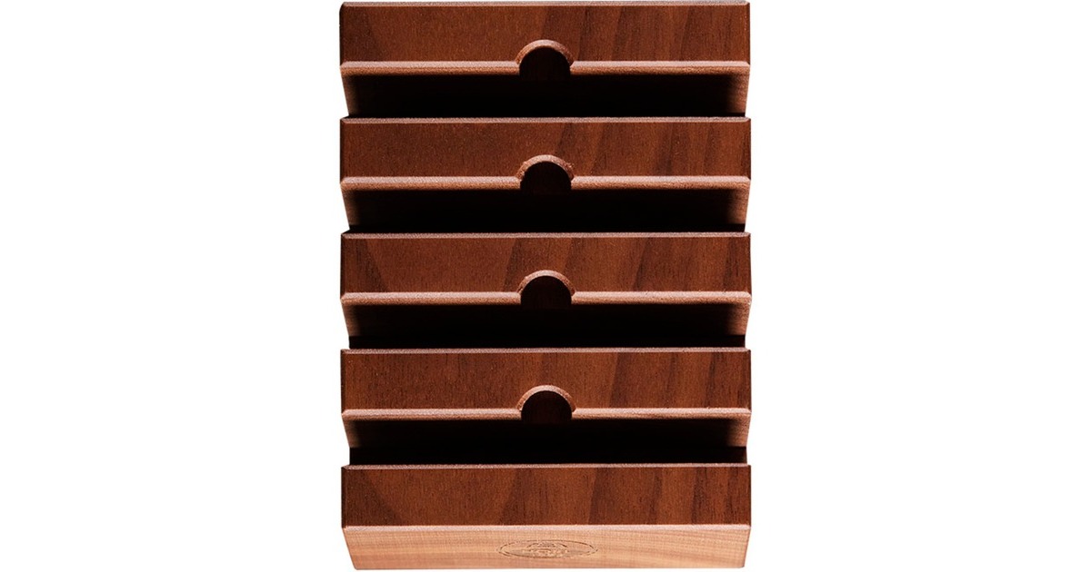 Die Schleifscheiben Station von HORL ist eine Aufbewahrungsstation für max. vier HORL Rollschleifer-Schleifscheiben. Sie wird aus einem massiven Block Nussbaum im Schwarzwald gefertigt. Die feinen Fasen veredeln die exklusive Optik. So sind die benötigten Schleifscheiben immer griffbereit und ein Blickfang in jeder Küche.Art.-Nr.: 1621760