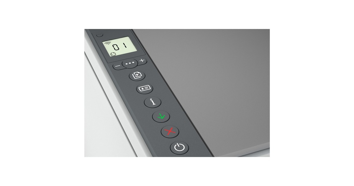 LCD-Symbole: 3 Lichter (Medien, Toner, Deckel geöffnet), 10 Tasten (Wi-Fi, Minus, Menü, Plus, Kopieren, Ausweiskopie, Info, Fortfahren, Abbrechen, Ein/Aus) |