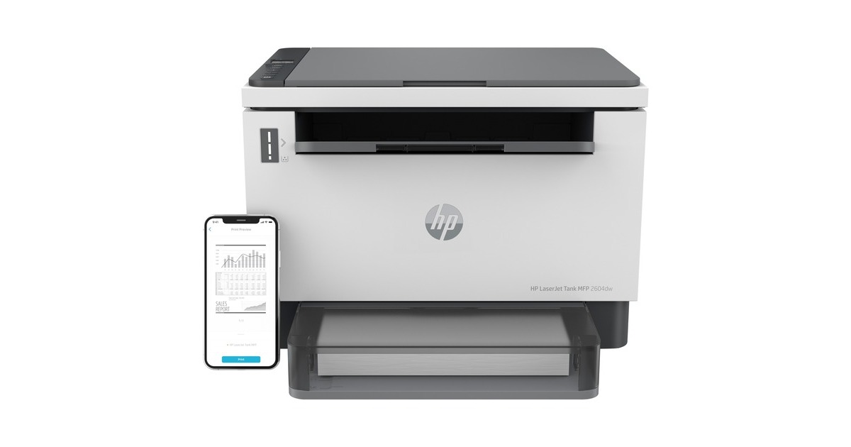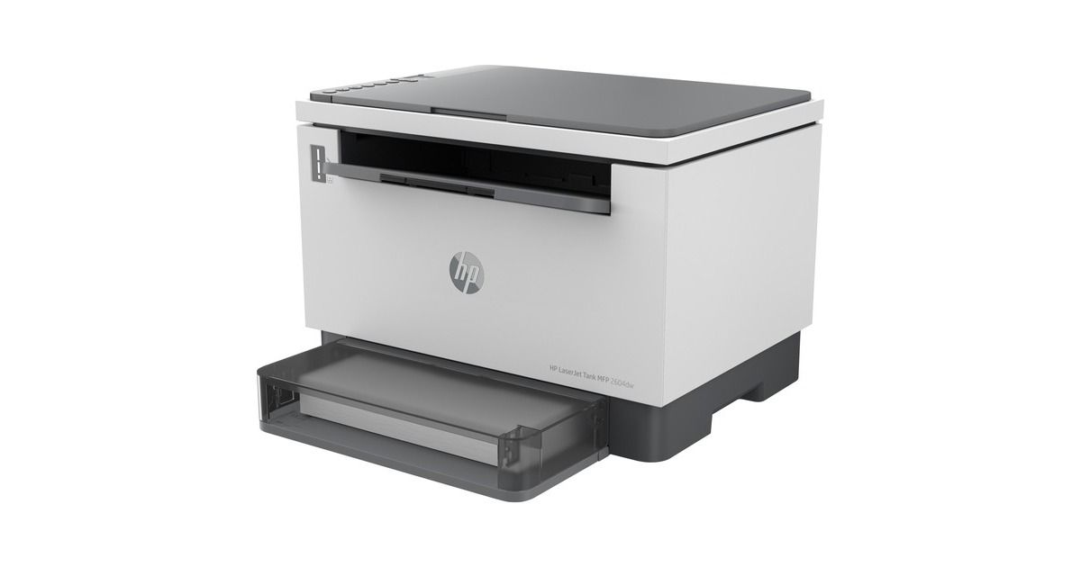 Der LaserJet Tank MFP 2604dw kombiniert eine Druckleistung von bis zu 22 Seiten (ISO) mit einem überzeugenden Konzept zur Senkung der Druckkosten. Dieser Monochrom-Laserdrucker mit integriertem Flachbettscanner und Kopierfunktion arbeitet nicht mit herkömmlichen Tonerpatronen, sondern verfügt über einen Tonertank, der bei Bedarf nachgefüllt werden kann. Das spart nicht nur Ressourcen, sondern senkt auch die Seitenpreise. Ein gefüllter Toner für bis zu 5000 Seiten (ISO) ist bereits im Lieferumfang enthalten. Darüber hinaus ist der 2604dw dank LAN- und WLAN-Schnittstelle flexibel einsetzbar und unterstützt Apple Airprint sowie Mopria. Sein Papierfach hat eine Kapazität von bis zu 250 Blatt DIN A4.Art.-Nr.: 1878868