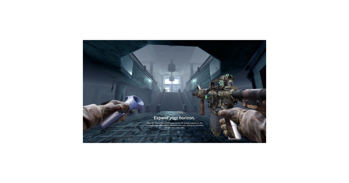 Das HTC Vive Pro 2 VR-Headset ist der mit Spannung erwartete Nachfolger der preisgekrönten VR Serie. Grafik und Immersion der nächsten Generation für fesselnde PC-VR. Es wurde entwickelt, um den Anforderungen der anspruchsvollsten VR Anwender von heute zu genügen - von weitläufigen Office Umgebungen und stark frequentierten Arcade- und Erlebniswelten bis hin zum Komfort des eigenen Wohnzimmers. Die VR Brille des Vive Pro 2 liefert eine Auflösung von 4896 x 2448 Pixeln. Setzt man sie auf, versinkt man sofort in den virtuellen Welten. So erlebt man eine neue kreative Tiefe; sieht, teilt und erforscht Ideen in ungeahnter Klarheit. Auch die feinen Details in VR-Spielen werden hier hervorgehoben. Die 5K-Auflösung macht VR zu einem wahren Genuss. Das große Sichtfeld (FOV) von 120° verbessert das VR-Erlebnis zusätzlich. Der größere Winkel ist besser auf das menschlichen Auge abgestimmt, sodass man natürlicher und entspannter sehen kann. Zudem genießt man außergewöhnlich flüssige Abläufe dank der Bildwiederholungsrate von 120 Hz. Und um sich in der echten Welt dabei nicht zu verletzen, bieten nicht nur die Basisstationen (nicht enthalten) einen für den Nutzer im VR sichtbaren Rahmen, sondern die Frontkameras am Headset des Vive blenden auch reale Objekte wie etwa Schränke oder Tische in die virtuelle Realität ein, um eine Kollision zu verhindern. Der einstellbare Augenabstand (IPD) sorgt für optimalen Sehkomfort. Man findet ganz einfach den Sweet Spot mit dem Drehrad, während man das Headset trägt. Das Gehäuse bietet eine ausbalancierte Konstruktion mit vielfältigen Anpassungsmöglchkeiten. Eine angenehme Passform für VR-Sessions unabhängig von Dauer oder Nutzungsverhalten. Passt für die meisten Kopfgrößen und Sehtypen, sogar für Brillen.Art.-Nr.: 1745889