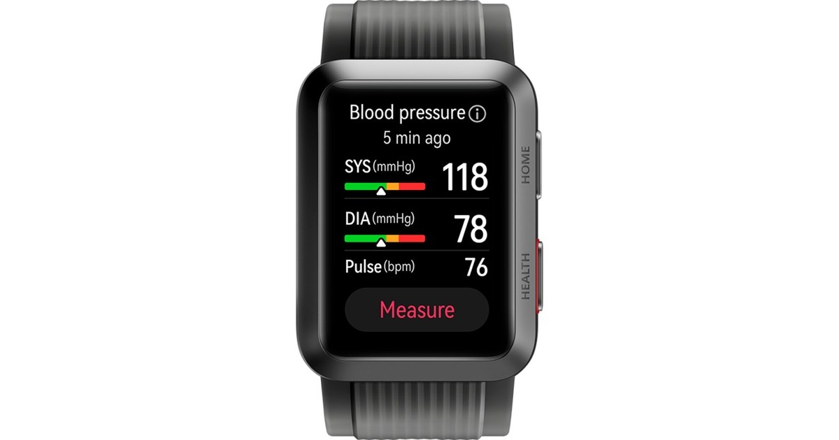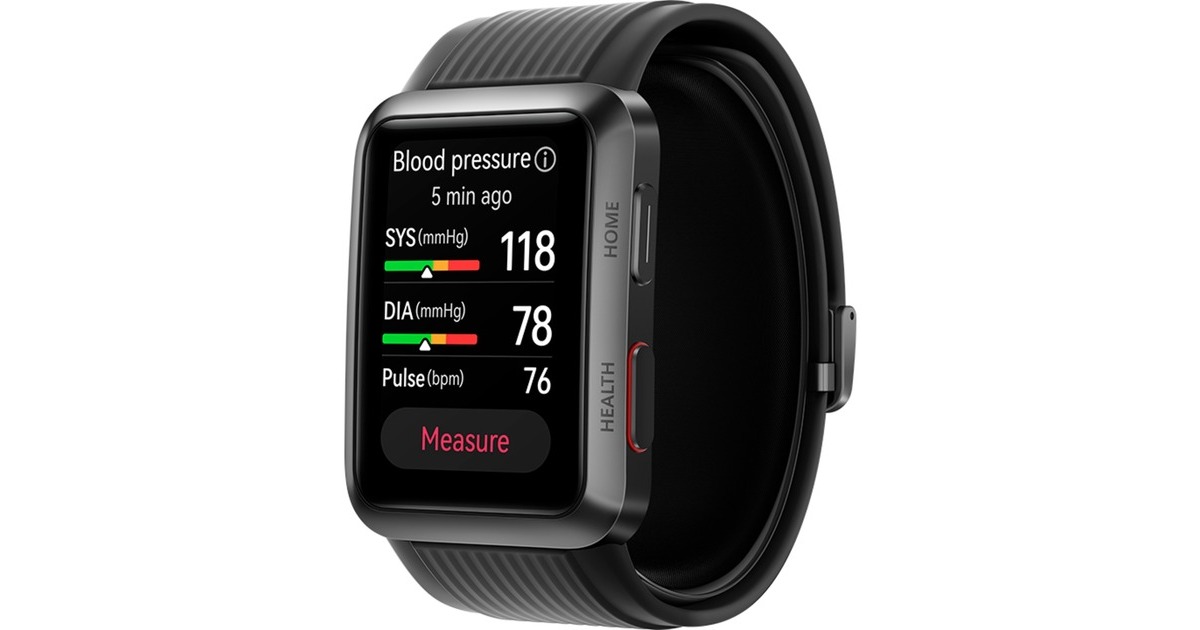 Die Watch D (Molly-B19) von Huawei ist eine Smartwatch mit Fokus auf Überwachung der eigenen Gesundheit. Sie verfügt über umfassende Funktionen zum Gesundheitsmanagement wie Blutdruckmessung mit Minipumpe und Luftkissen, täglichem Gesundheitscheck, EKG-Analyse, Herzfrequenzmessung, Hauttemperatur-Kontrolle und eine Vielzahl von Workout-Funktionen. Dabei unterstützt die Watch D ihren Nutzer mit einem intelligenten Sprachassistenten, Steuerung der Musikwiedergabe, Nachrichtenerinnerung, Ararm und Wettervorhersagen - alles in einem stabilen Gehäuse, das nur 13,6 mm dick ist und mit einem 4,16 cm (1,64") großen AMOLED Farb-Touchdisplay ausgestattet ist.Art.-Nr.: 100010669