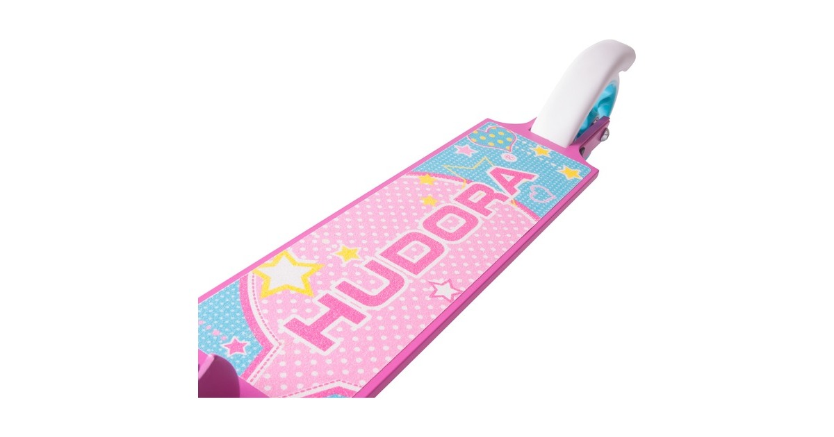 Schnell unterwegs sein und dabei jede menge Spaß haben, genau diese Eigenschaften bringt der Kinderscooter Skate Wonders von HUDORA mit. Der aus hochwertigen Stahl/Aluminium verarbeitete Scooter besitzt zwei High-Rebound PU Rollen: 125mm Ø aus gegossenem PU, sowie einen höhenjustierbaren Lenker mit Komfortgriffen, welcher von 62 bis 83 cm verstellbar ist. Auch für die Sicherheit ist beim Skate Wonders gesorgt, mit der Hinterradreibungsbremse aus Stahl lässt sich blitzartig die Geschwindigkeit reduzieren. Für einen einfachen Transport sorgt der Faltmechanismus. Die Trittfläche des Skate Wonders ist ca. 40 cm lang und 10 cm breit und hat eine maximale Belastbarkeit von 100 kg.Art.-Nr.: 1309754